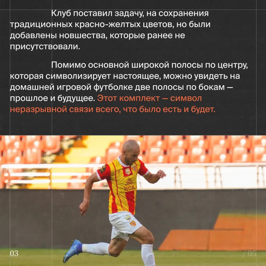 Помимо основной широкой полосы по центру, которая символизирует настоящее, можно увидеть на домашней игровой футболке две полосы по бокам — прошлое и будущее. Этот комплект — символ неразрывной связи всего, что было есть и будет.