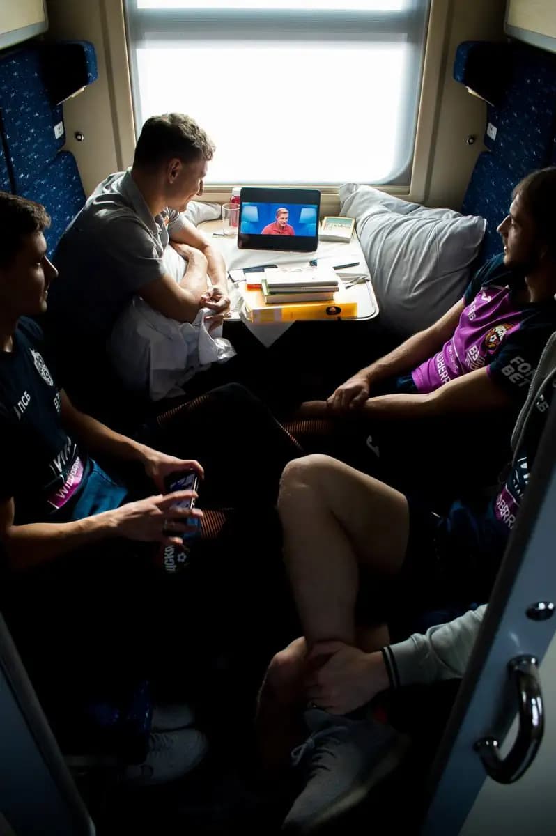 В последнее время тема таких выездов больше на слуху. По понятным причинам всем командам РПЛ нужно ездить (именно ездить) в Краснодар и Ростов. В этом путешествии есть как плюсы, так и минусы. И каждый игрок, тренер или другой работник клуба переносит поезд по-своему! Кто-то смотрит много фильмов, кто-то играет в нарды, кто-то общается с коллегами и много смеется!