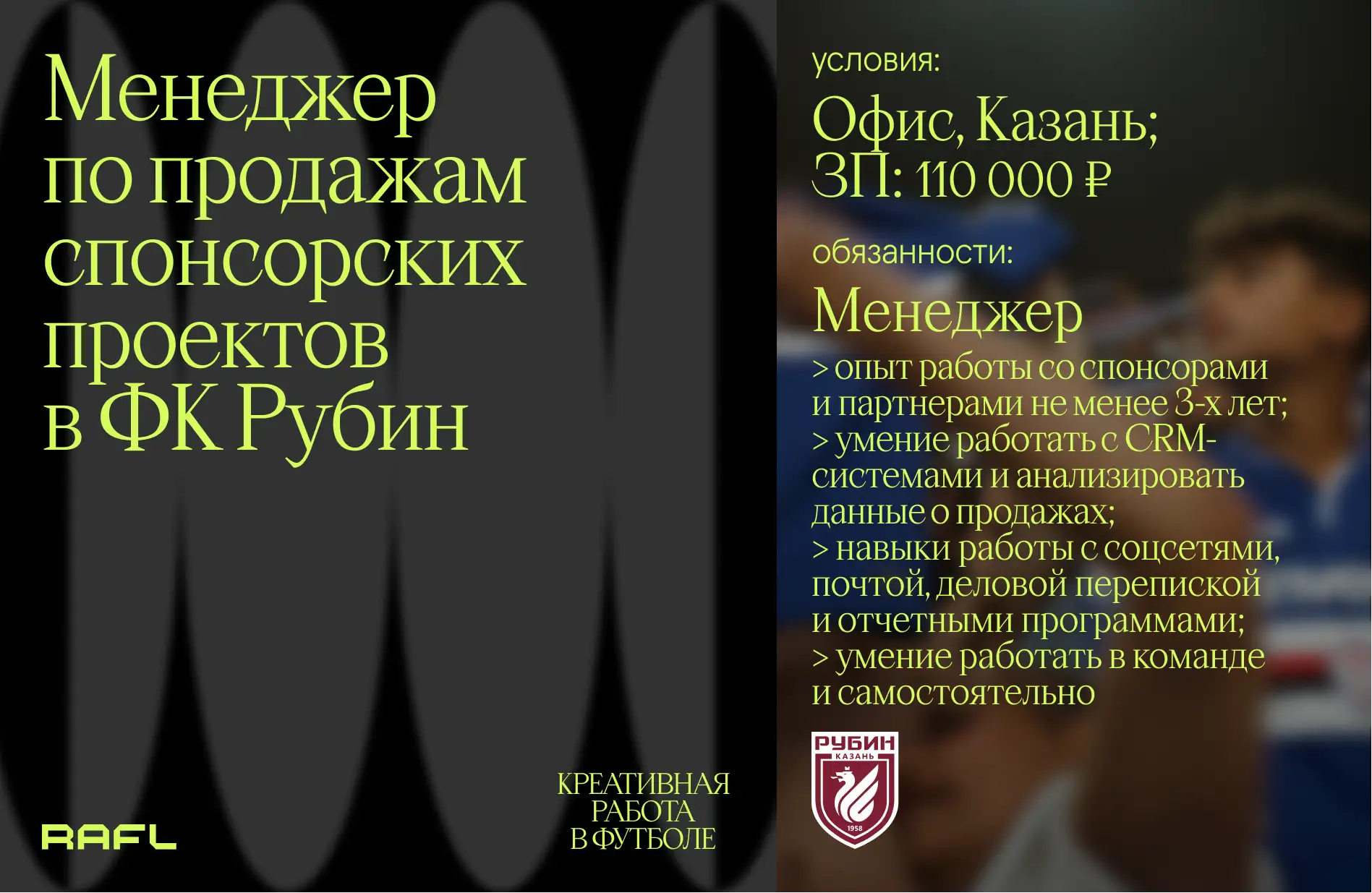 - Работа с известным спортивным клубом и большой лояльной аудиторией;