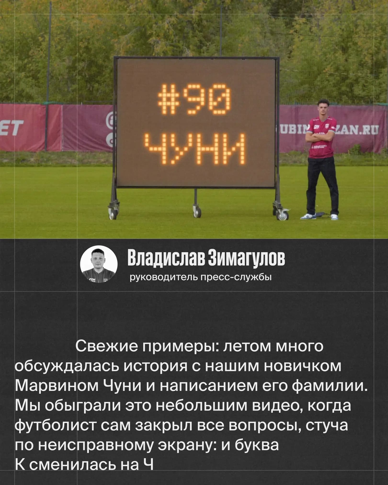 Стоит отметить наши клубы – у наших команд очень бодрые соцсети, разнообразнейший контент. «Динамо» Махачкала, «Акрон», «Крылья Советов», «Динамо», ЦСКА и другие клубы – у коллег можно перечислить очень много интересных проектов и продуктов. Все больше документальных и сериальных проектов. Это очень сложный жанр, но видим, что классный проект получается у ЦСКА, очень интересный сериал делает «Акрон», а «Краснодар» в формате сериала готовит видео о матчах с классным уровнем погружения и деталей из раздевалки. Клубы постепенно пришли к тому, что надо показывать, как изнутри выглядит быт команды, раздевалку в чистом виде