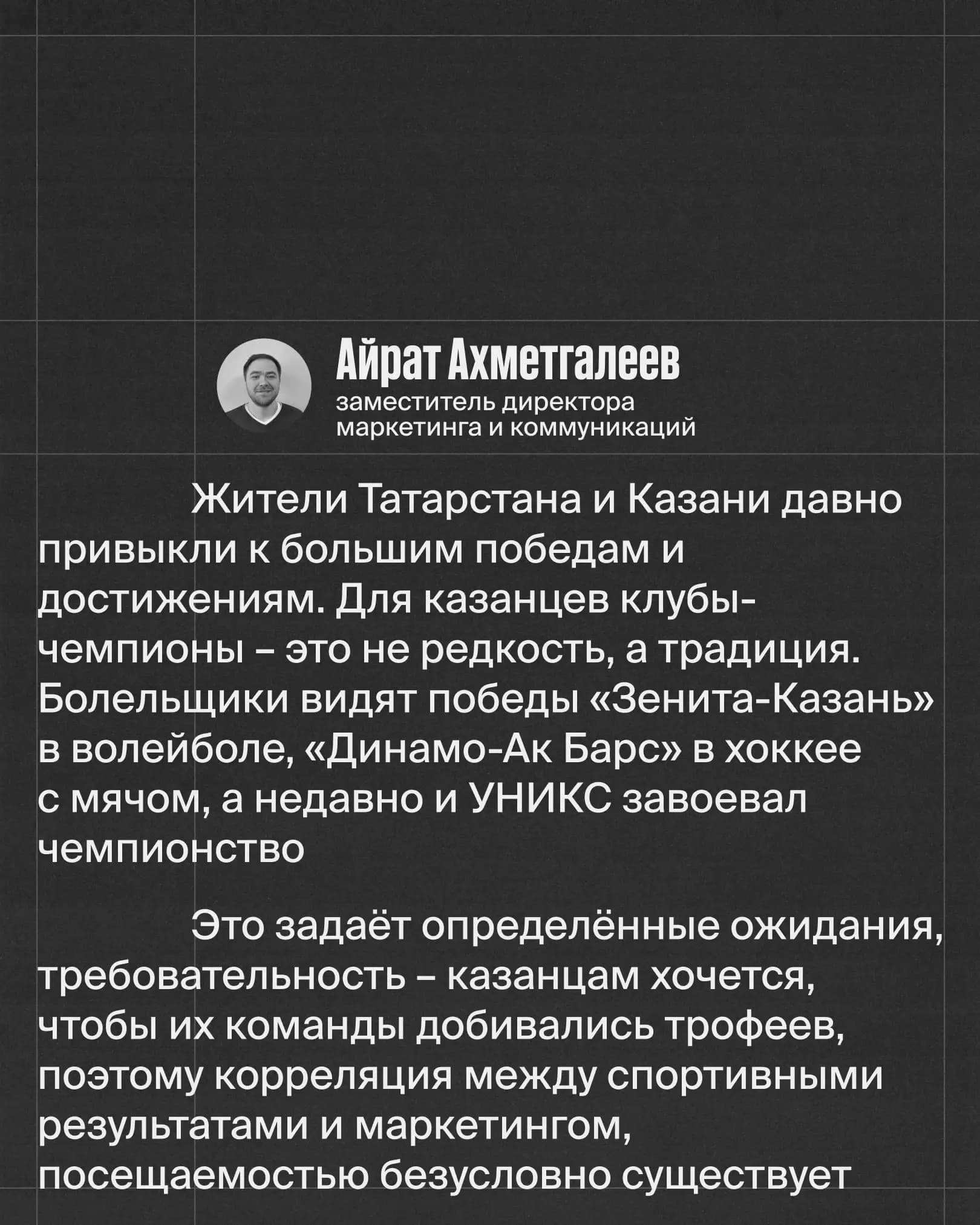 В современных реалиях разработка тематического матчдея – это базовый подход для всех клубов. Особенно в нашем случае, ведь конкуренция за внимание аудитории в Казани – не только другие спортивные события, но и богатая культурная жизнь города