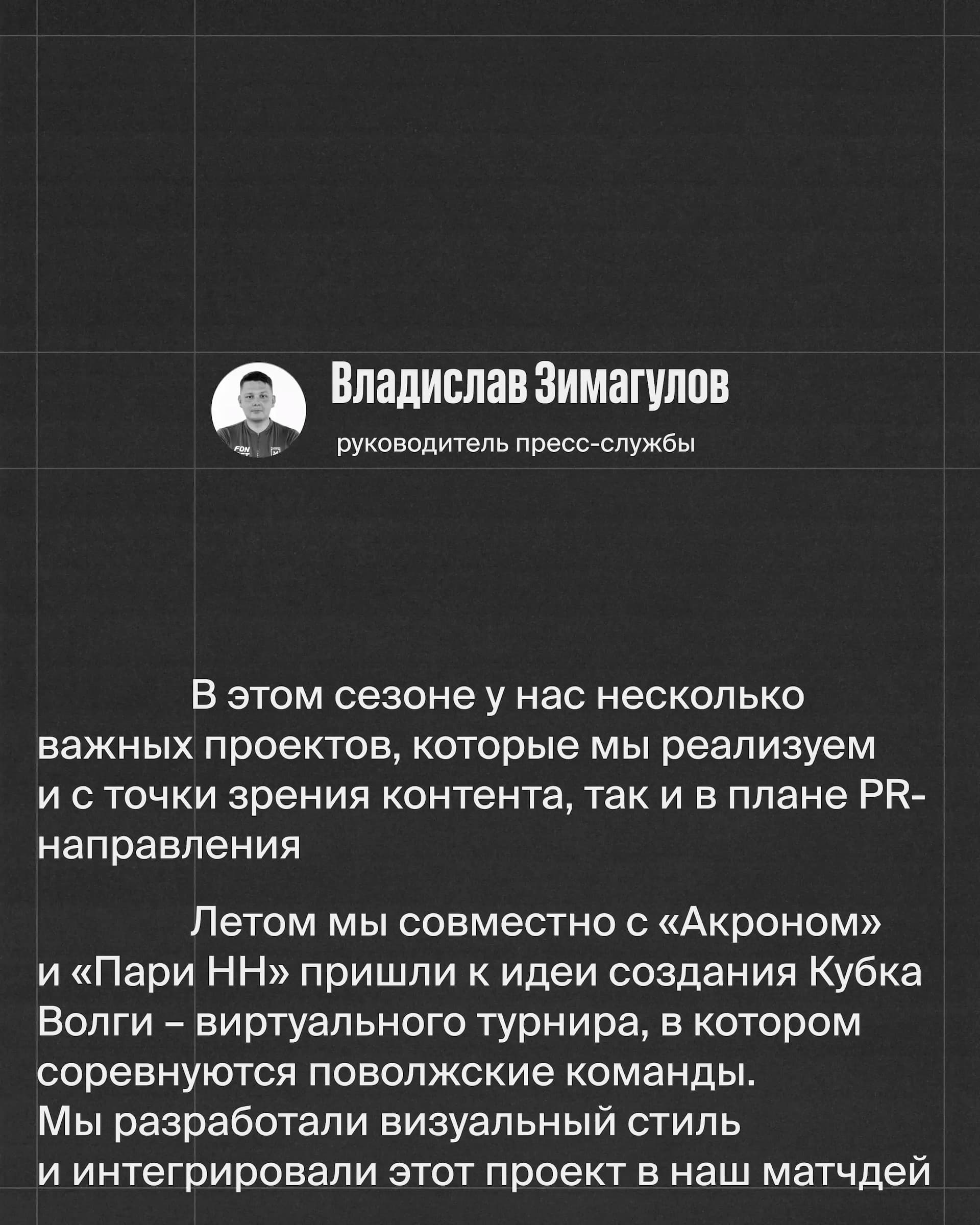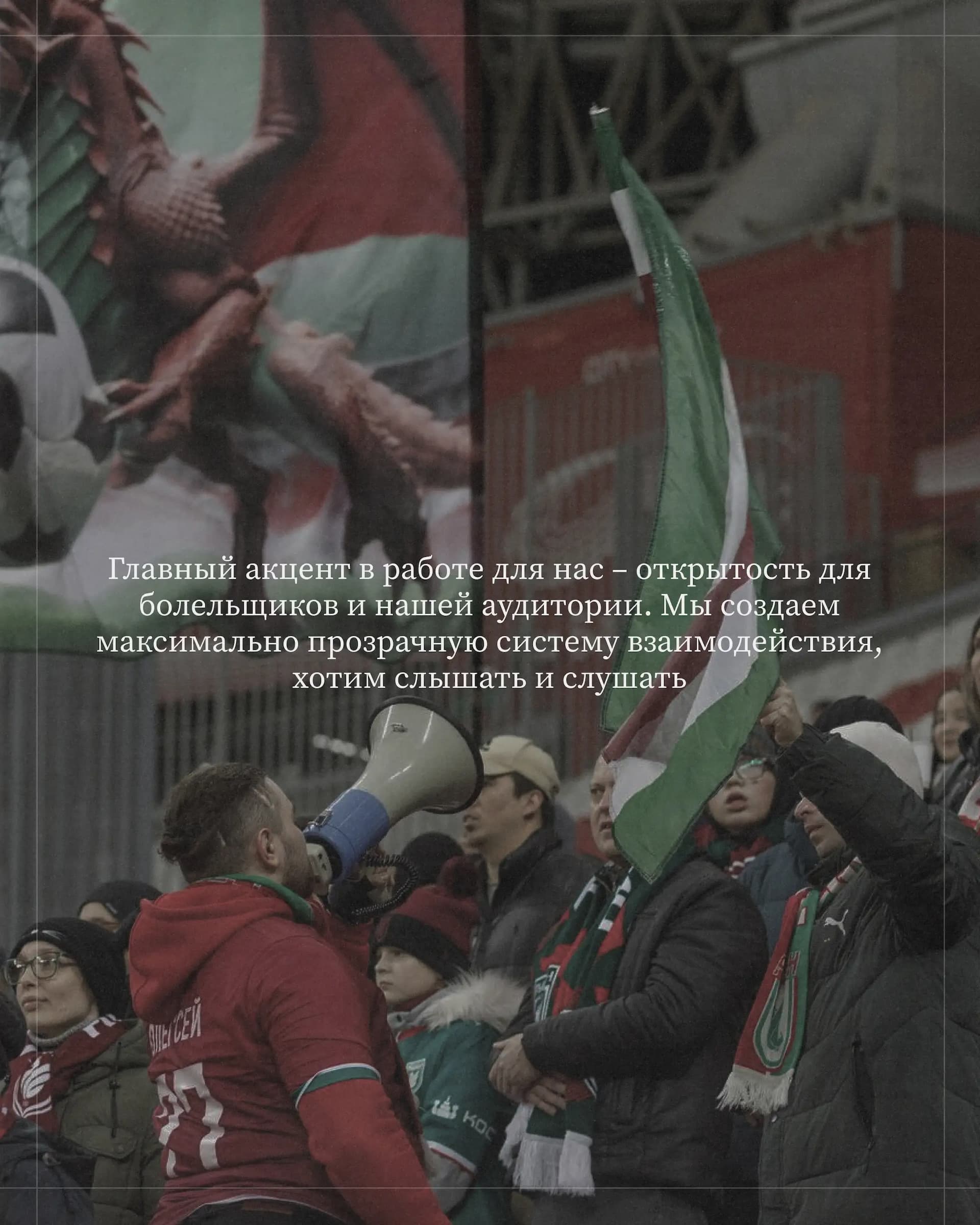 Отдельная благодарность нашим болельщикам! Мы всегда стараемся учитывать их мнение — проводим открытые голосования, обсуждения и общаемся с ними. Принцип открытости — одна из наших главных ценностей, и мы гордимся, что реализуем многие проекты вместе с нашими болельщиками