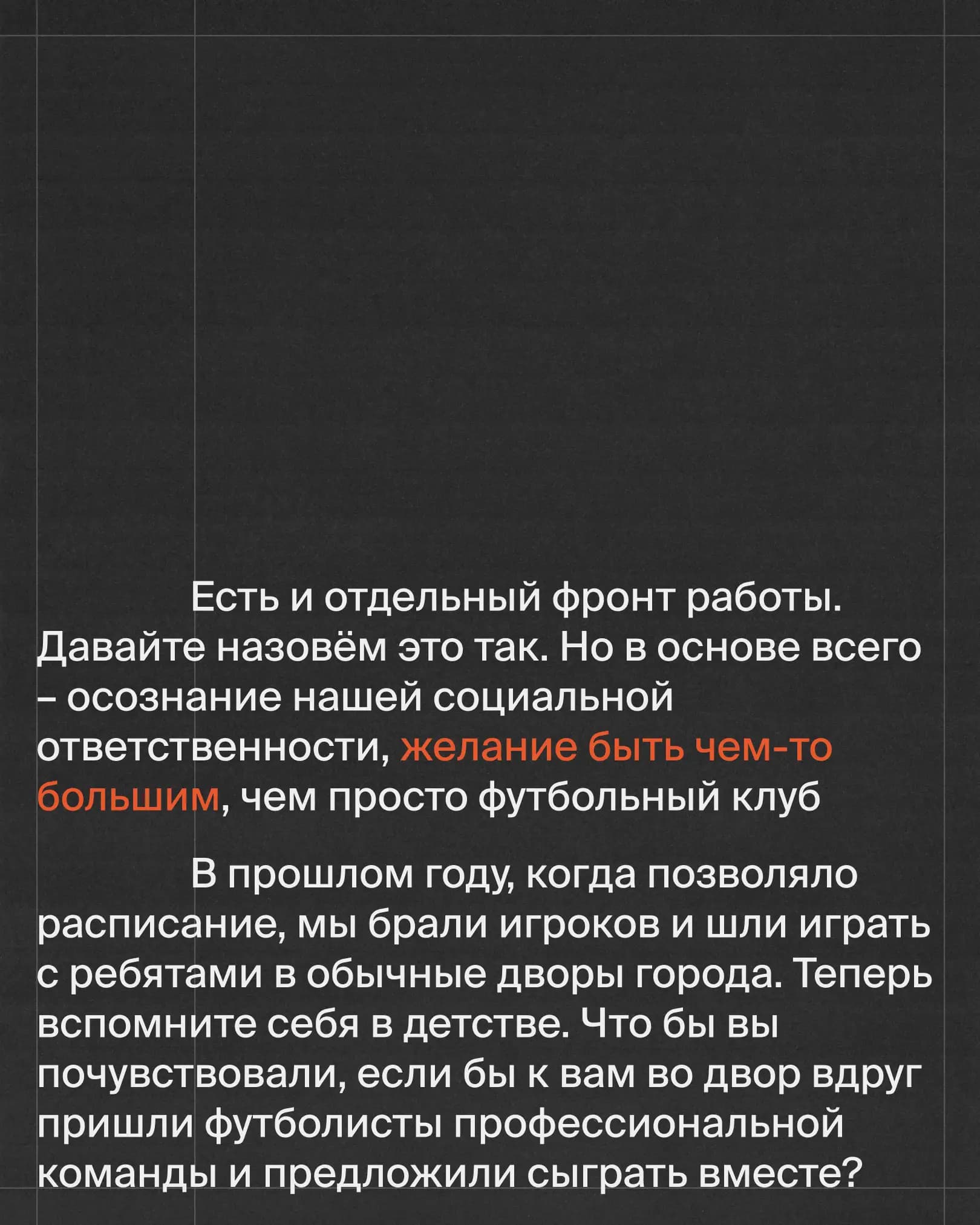 Вот вам наглядные примеры выстраивания нашей визуальной и вербальной коммуникации. В нашем регионе мало быть просто сильной спортивной командой — важно быть его полноценной частью. Это, пожалуй, и есть наша главная цель и задача!