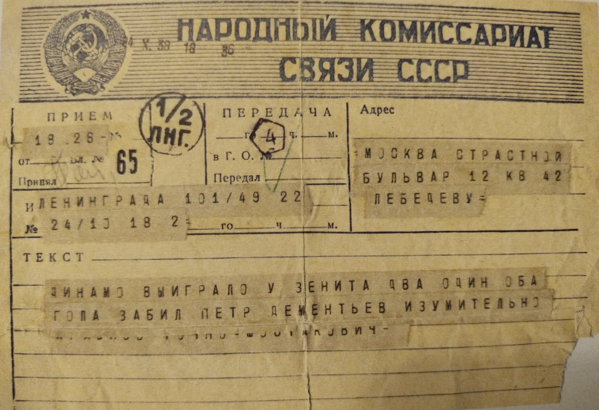 (Телеграмма Шостаковича Лебедеву в Москву от 24 октября 1938 года).