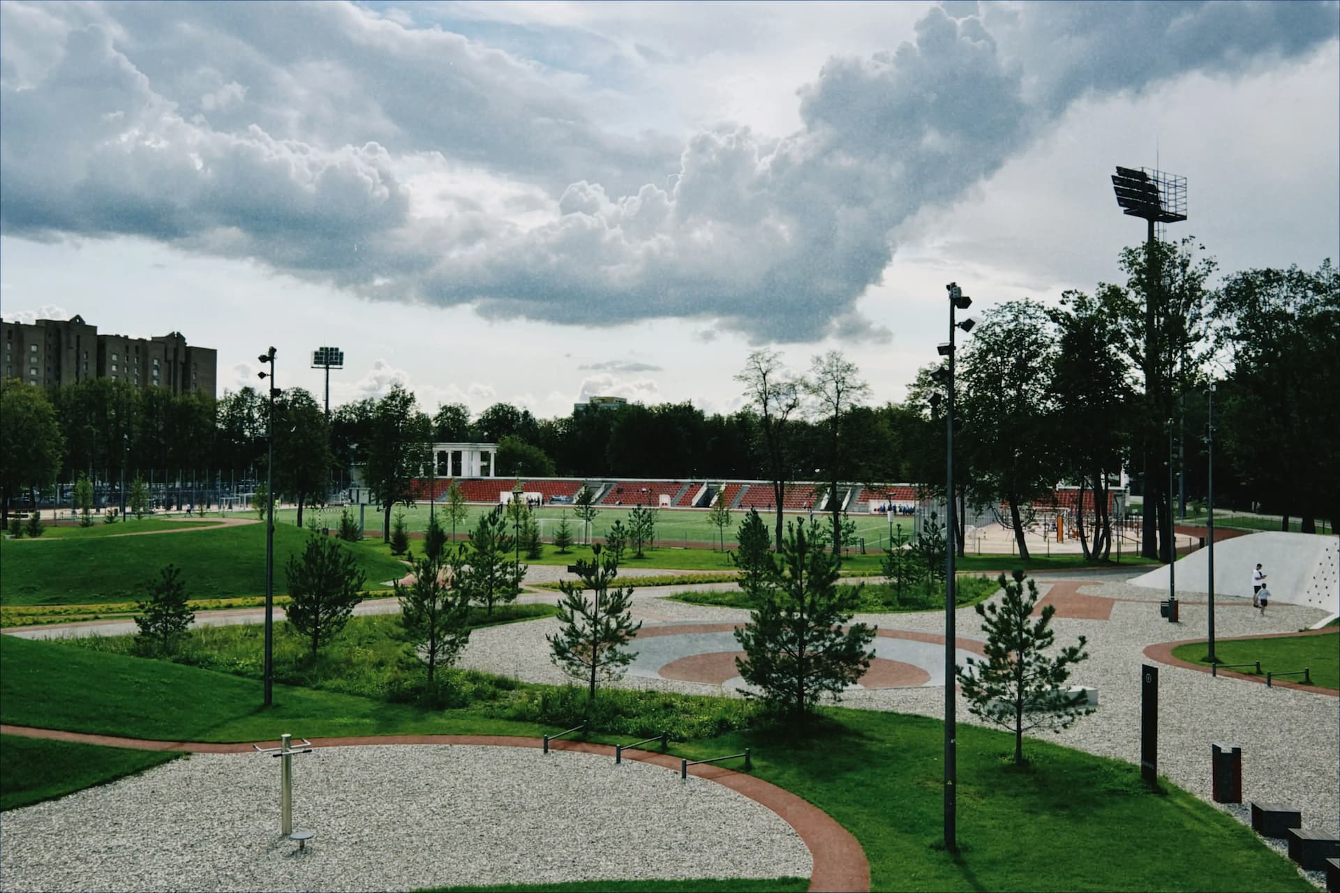 «Авангард» — пример стадиона, который органично вписан в новую городскую историю. Он был построен в 1954 году, а в нулевых пребывал в аварийном состоянии. Теперь он — часть пространства, где гости заняты разными активностями: играют в бадминтон или настольный теннис, отдыхают на лавочках или в кафе, прогуливаются на велосипеде или самокате. Самые сильные покоряют холмы ногами или на скейте. А на футбольном поле так же, как и 70 лет назад, идет игра в мяч.