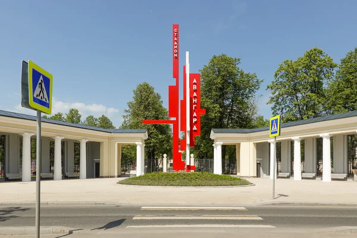 При работе над проектом по восстановлению и развитию спорткомплекса «Авангард», мы решили вдохнуть новый смысл в его название и напомнить об одноименном направлении в искусстве начала XX века. Эту идею мы воплотили в виде элементов ландшафтного дизайна, навигационных носителей, малых архитектурных форм и арт-объектов, расположенных на территории, а также в облике новых павильонов, расположенных в восточной части территории.