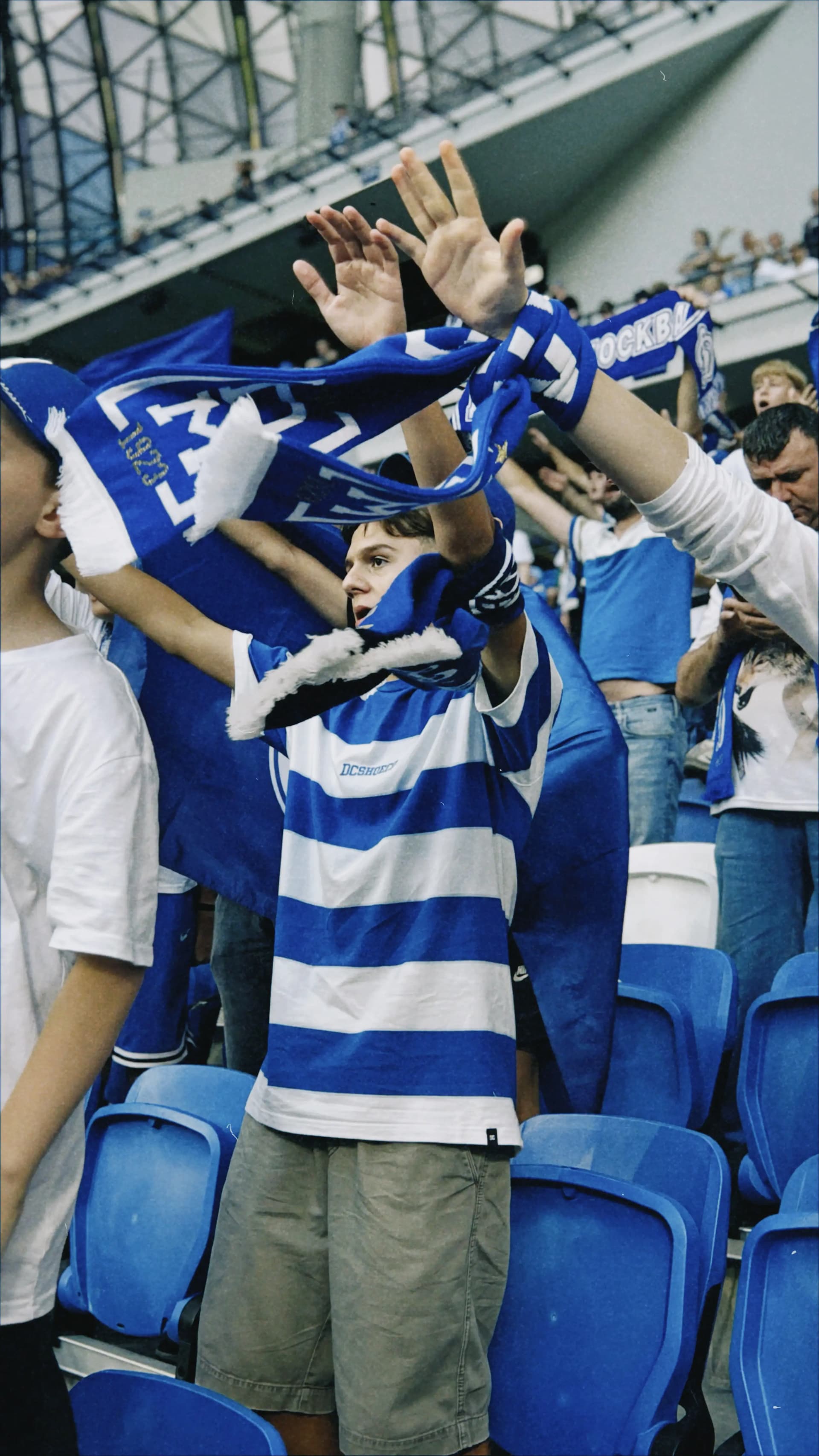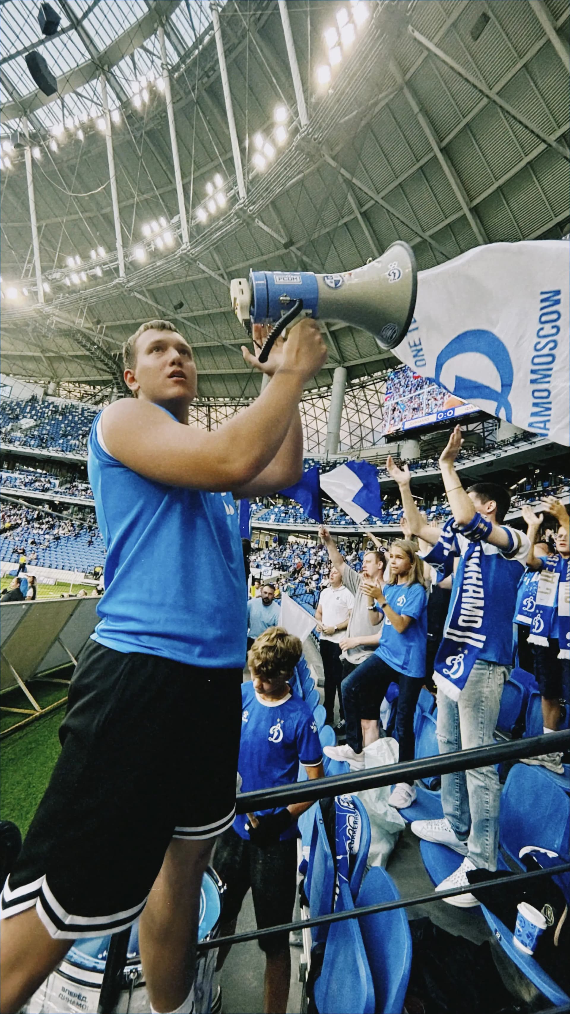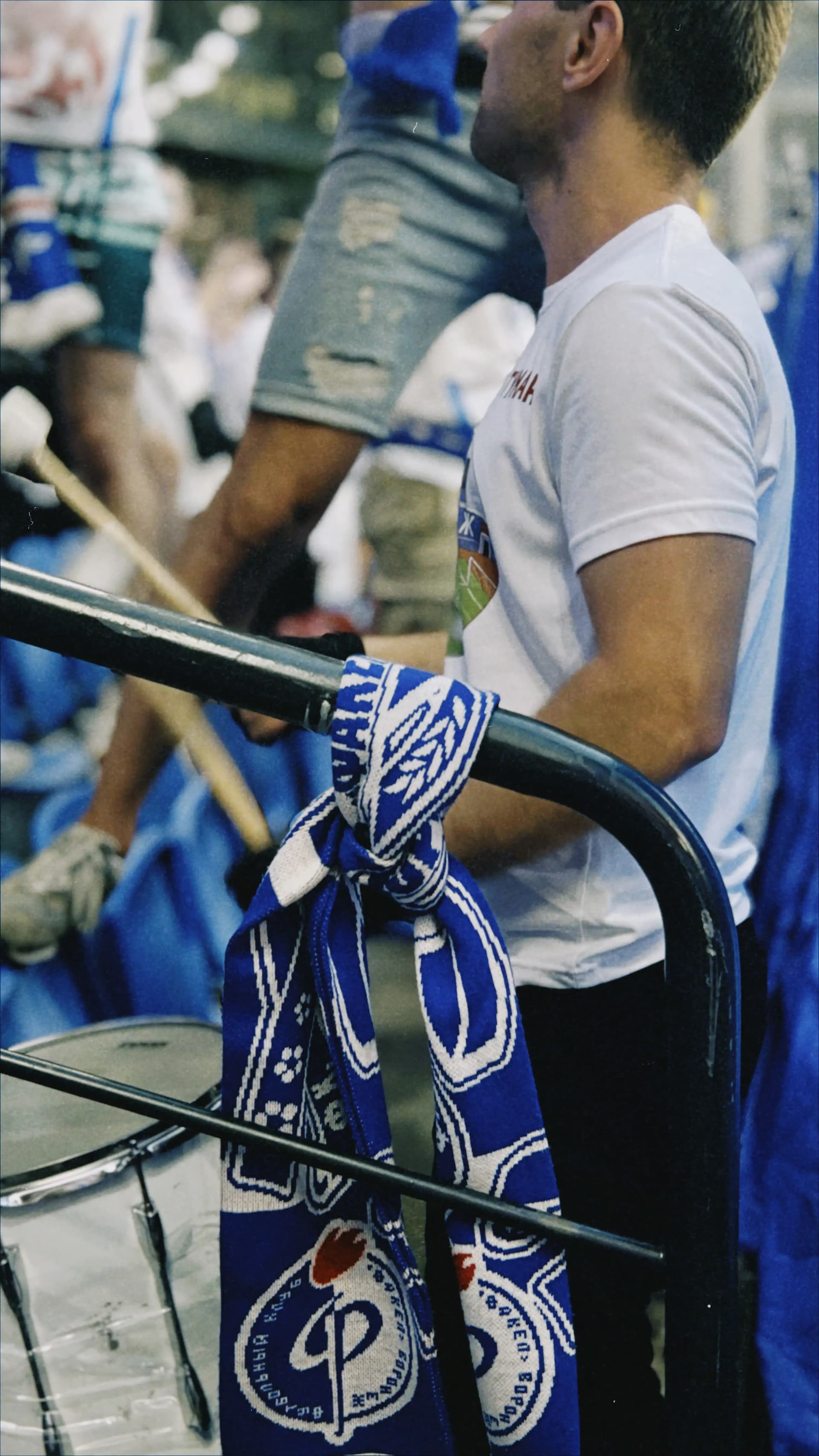 Освоиться на фанатской трибуне Динамо было легко — среди семей, добрых детей и расслабленных взрослых я испытала чувство гостеприимного дома. Периодически я следила за взаимодействием заводящего и барабанщика. Они подбадривали друг друга. Этот дружелюбный контакт придавал уверенности юному барабанщику. Его глаза светились всякий раз, когда он понимал, что у него все получается.