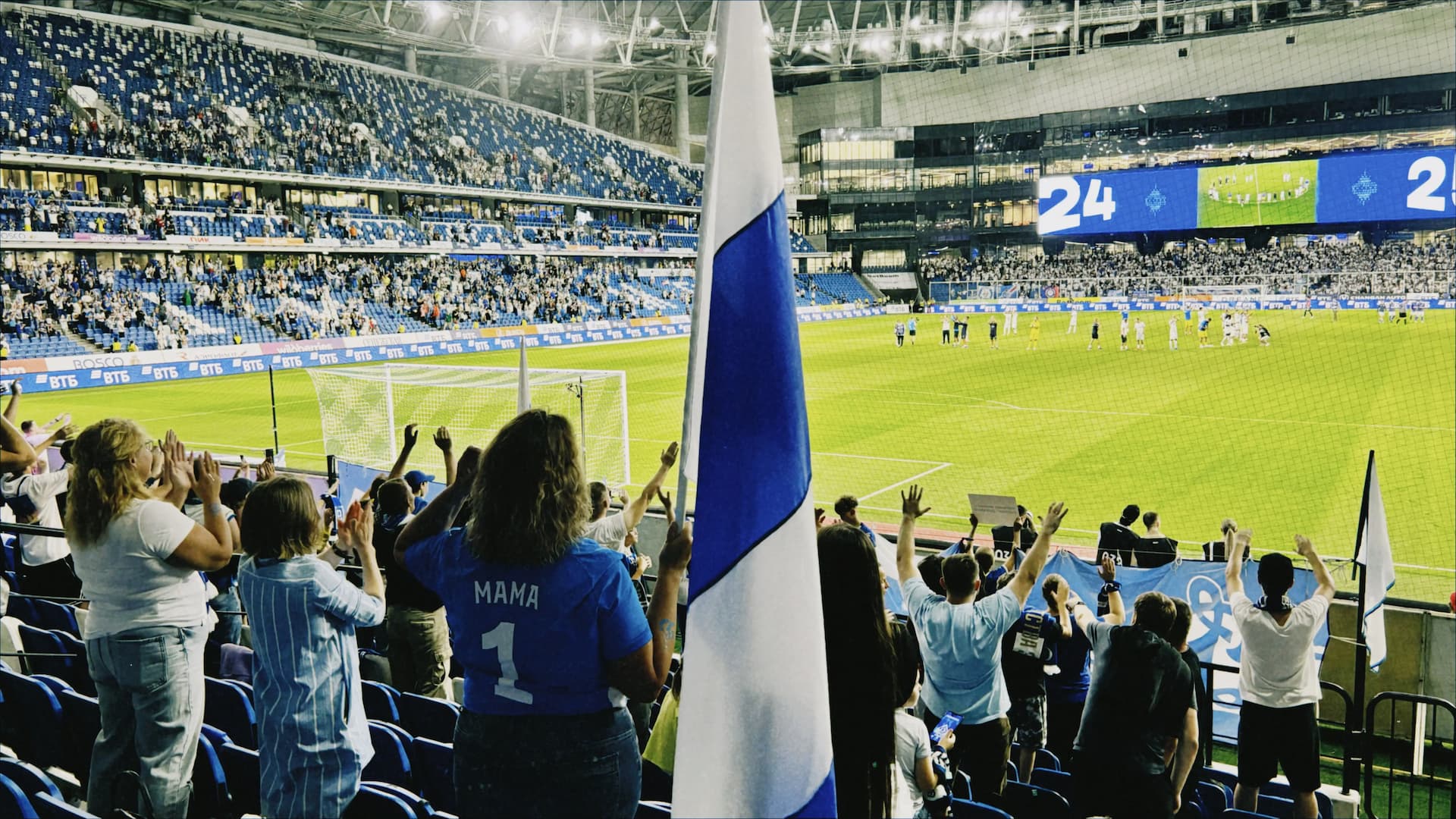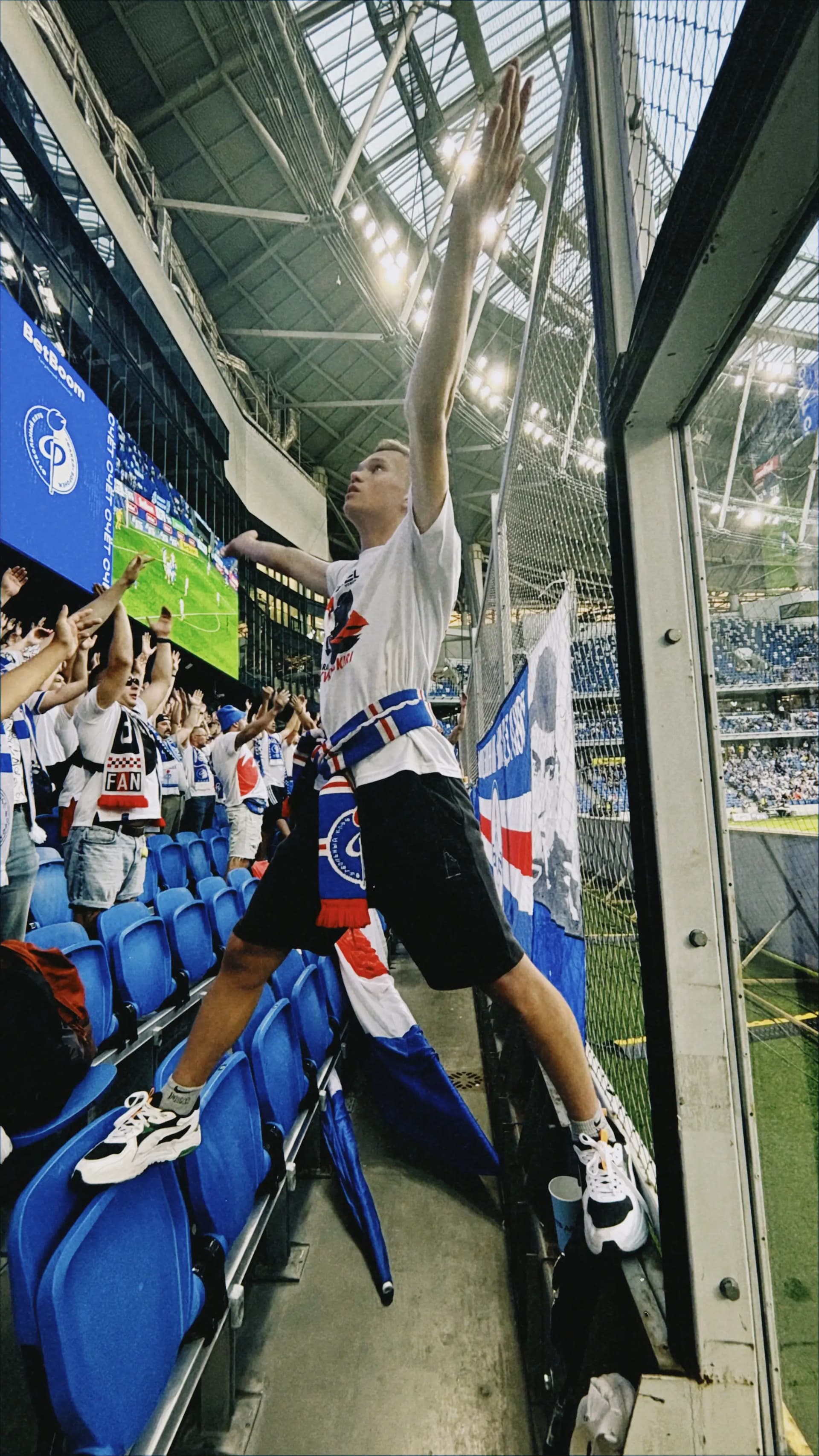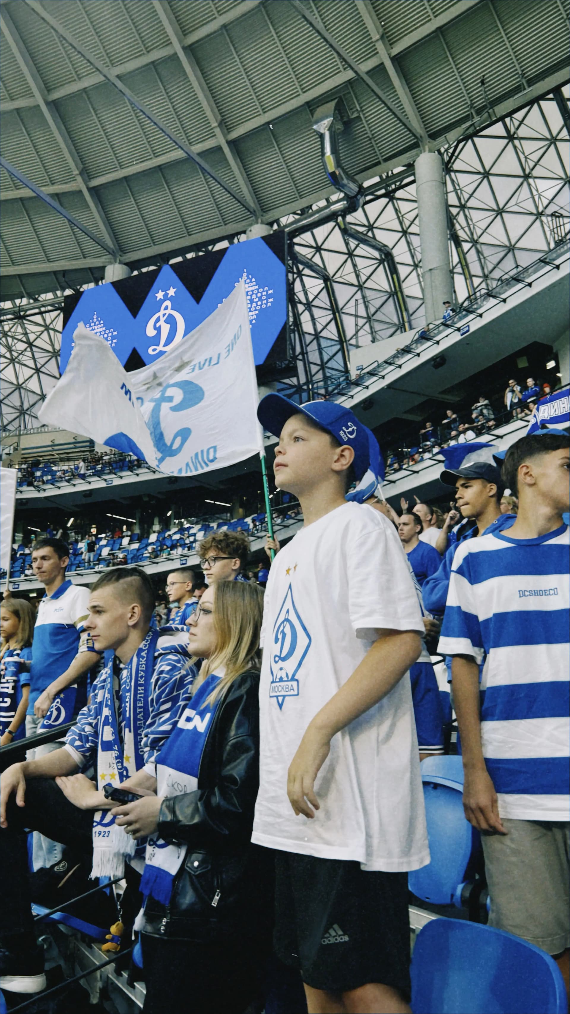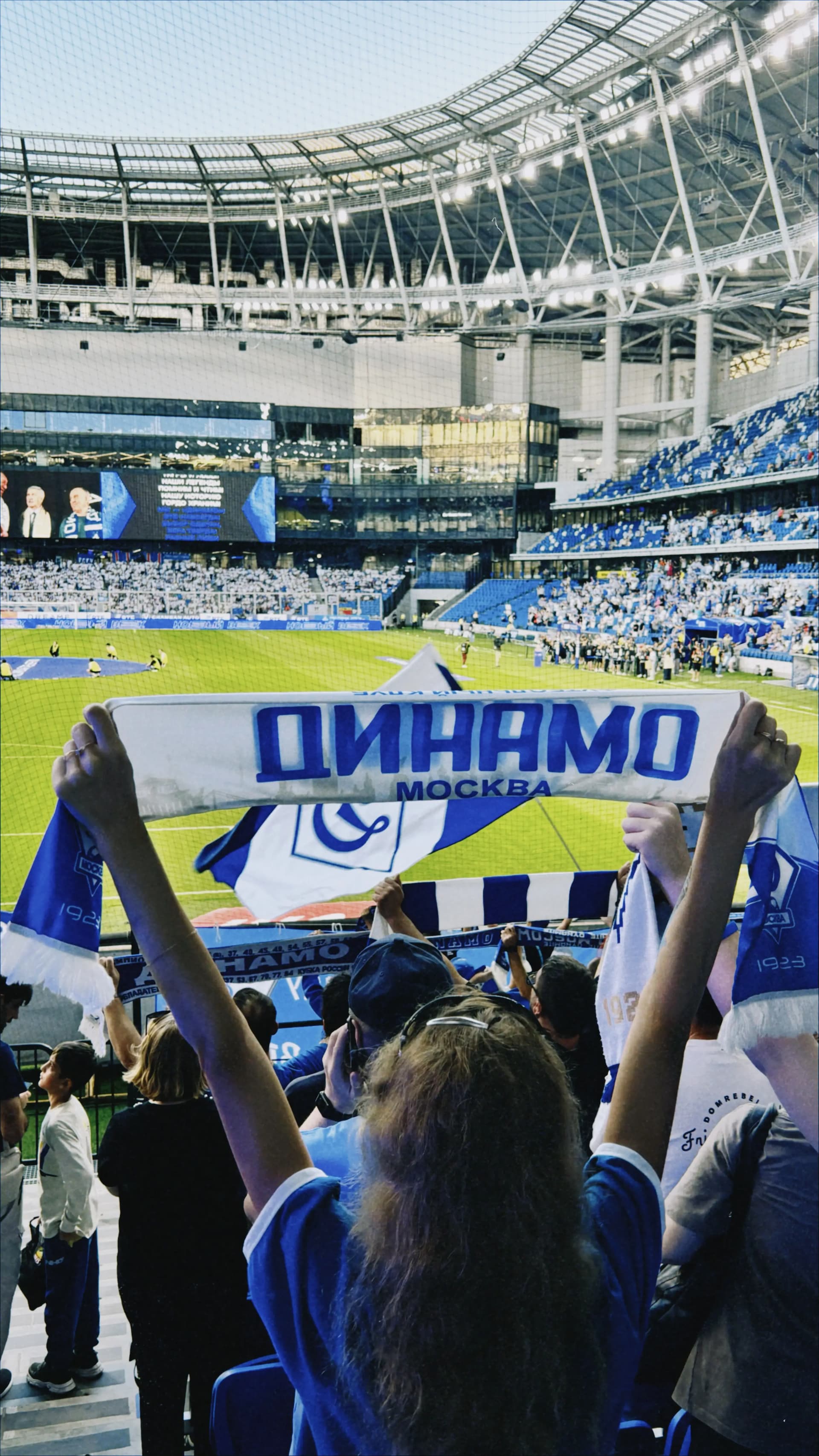 Освоиться на фанатской трибуне Динамо было легко — среди семей, добрых детей и расслабленных взрослых я испытала чувство гостеприимного дома. Периодически я следила за взаимодействием заводящего и барабанщика. Они подбадривали друг друга. Этот дружелюбный контакт придавал уверенности юному барабанщику. Его глаза светились всякий раз, когда он понимал, что у него все получается.