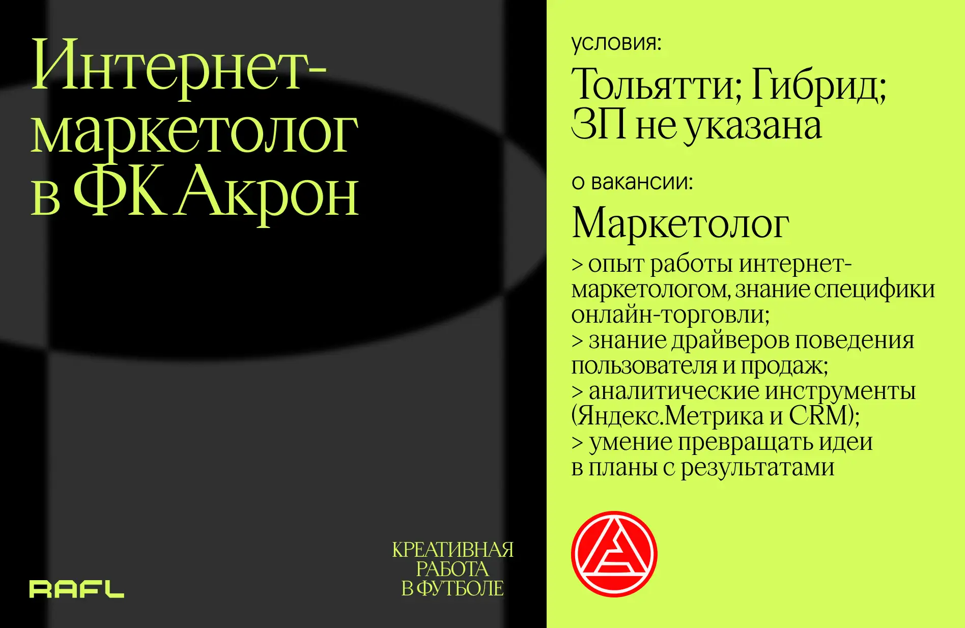 - Работу в команде единомышленников и профессионалов, увлечённых футболом;