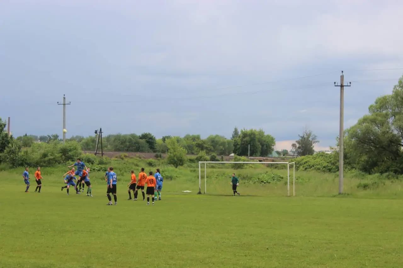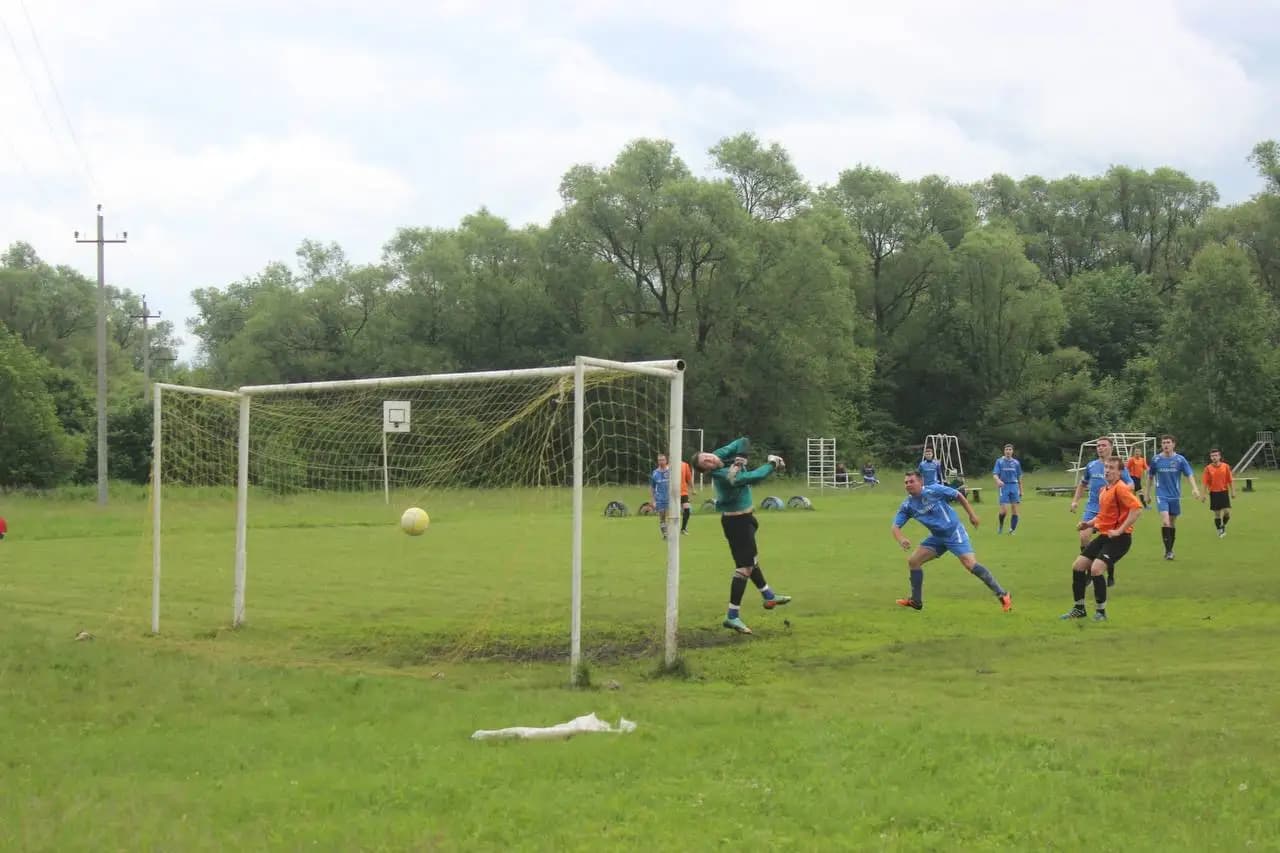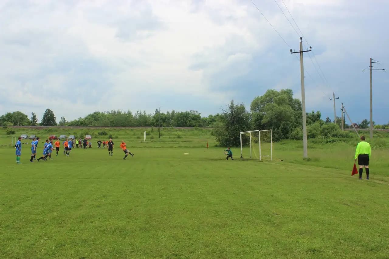 Поединок начался с атак гостей, хозяева старались ловить соперника на контратаках. Публика собралась достаточно активная и разнообразная, от детворы до ветеранов футбола. Болельщики активно реагировали на игровые моменты, вступали в перепалку с организатором команды гостей. Он в карман за словом не лез. На поле назревал гол в ворота хозяев, но до определенного времени сохранялись нули на табло. Самый реальный шанс отличиться в этот отрезок гости упустили не реализовав пенальти. Этот факт их не смутил, в заключительной части первого тайма они дважды отправили мяч в сетку соперника.