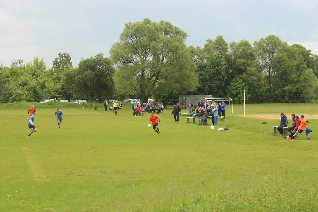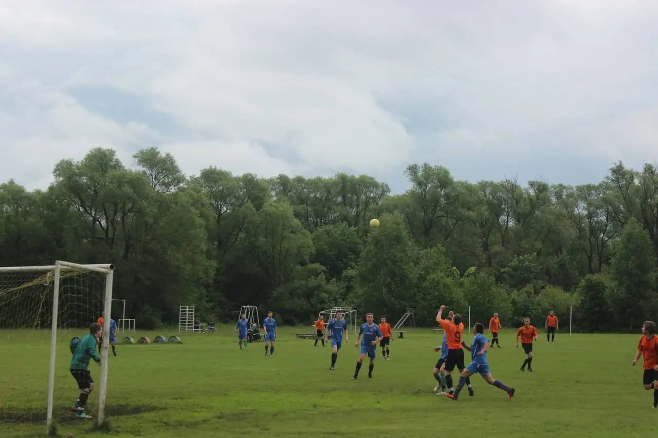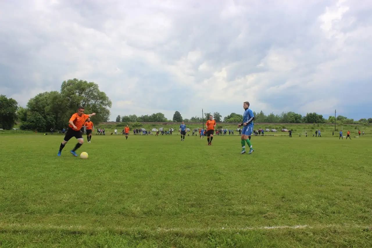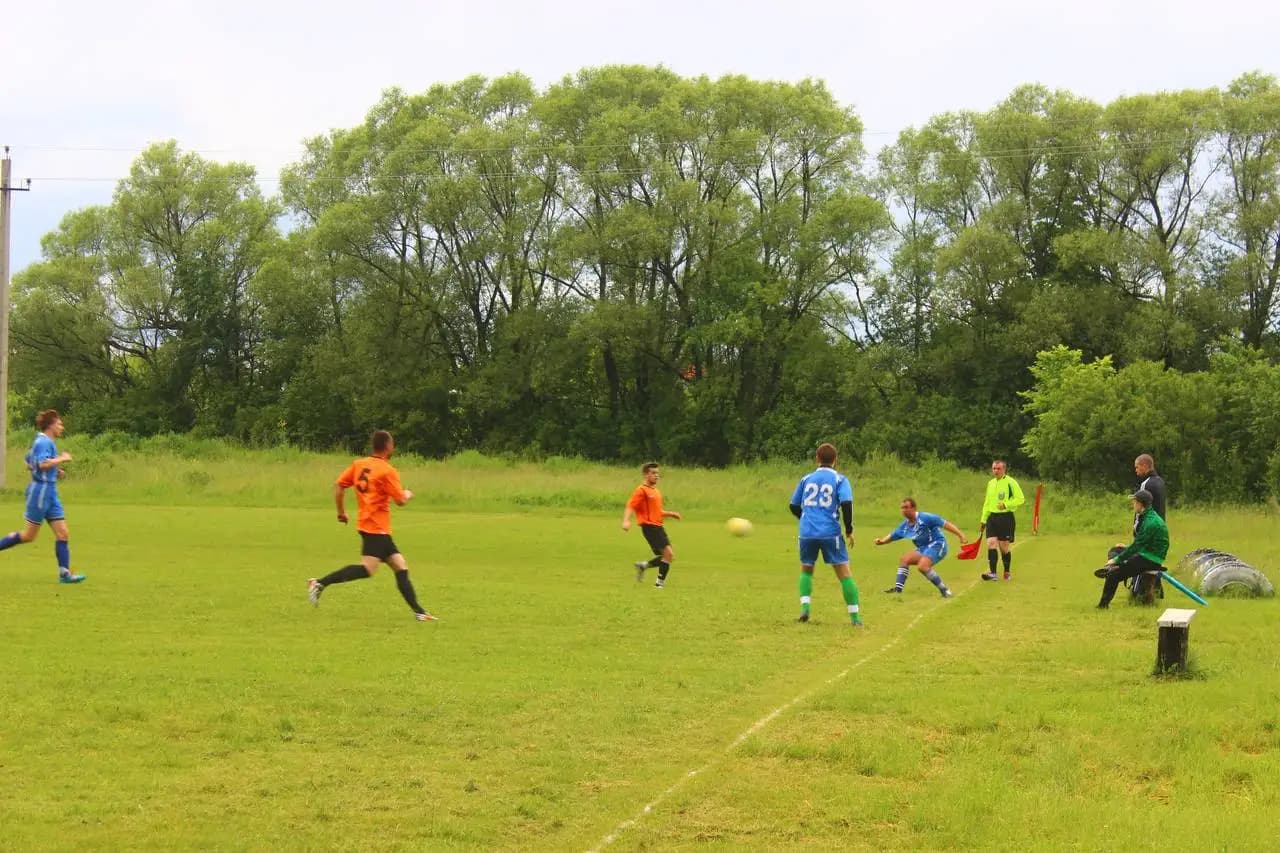 Поединок начался с атак гостей, хозяева старались ловить соперника на контратаках. Публика собралась достаточно активная и разнообразная, от детворы до ветеранов футбола. Болельщики активно реагировали на игровые моменты, вступали в перепалку с организатором команды гостей. Он в карман за словом не лез. На поле назревал гол в ворота хозяев, но до определенного времени сохранялись нули на табло. Самый реальный шанс отличиться в этот отрезок гости упустили не реализовав пенальти. Этот факт их не смутил, в заключительной части первого тайма они дважды отправили мяч в сетку соперника.