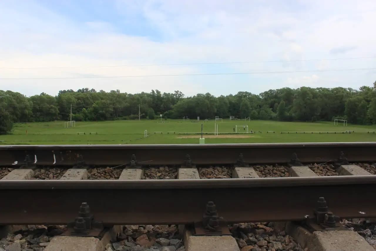 Местный стадион с одной стороны зажат веткой однопутной железной дороги, с трех других небольшим лесом, за которым местные жители выращивают фрукты и овощи на своих земельных участках.