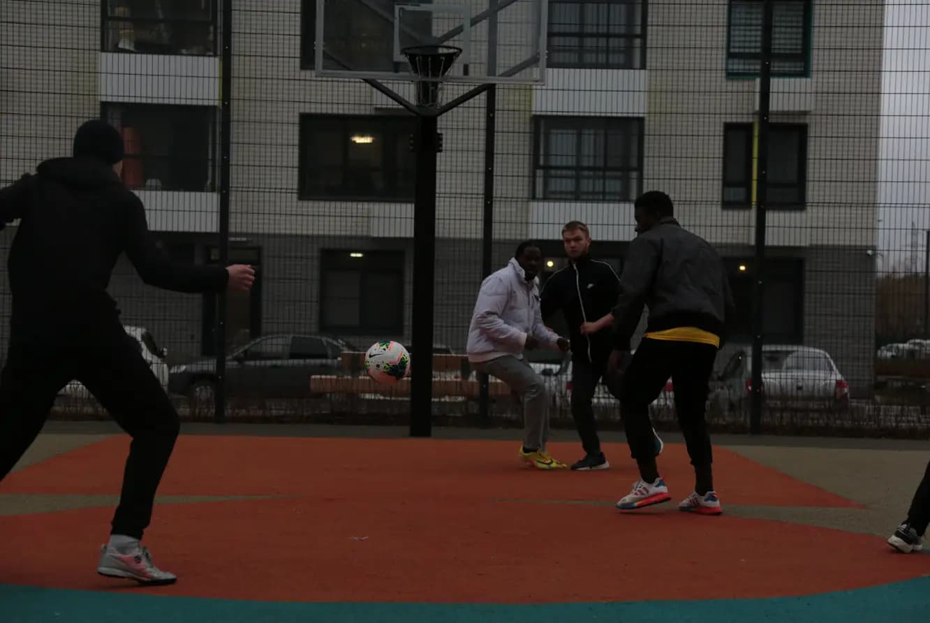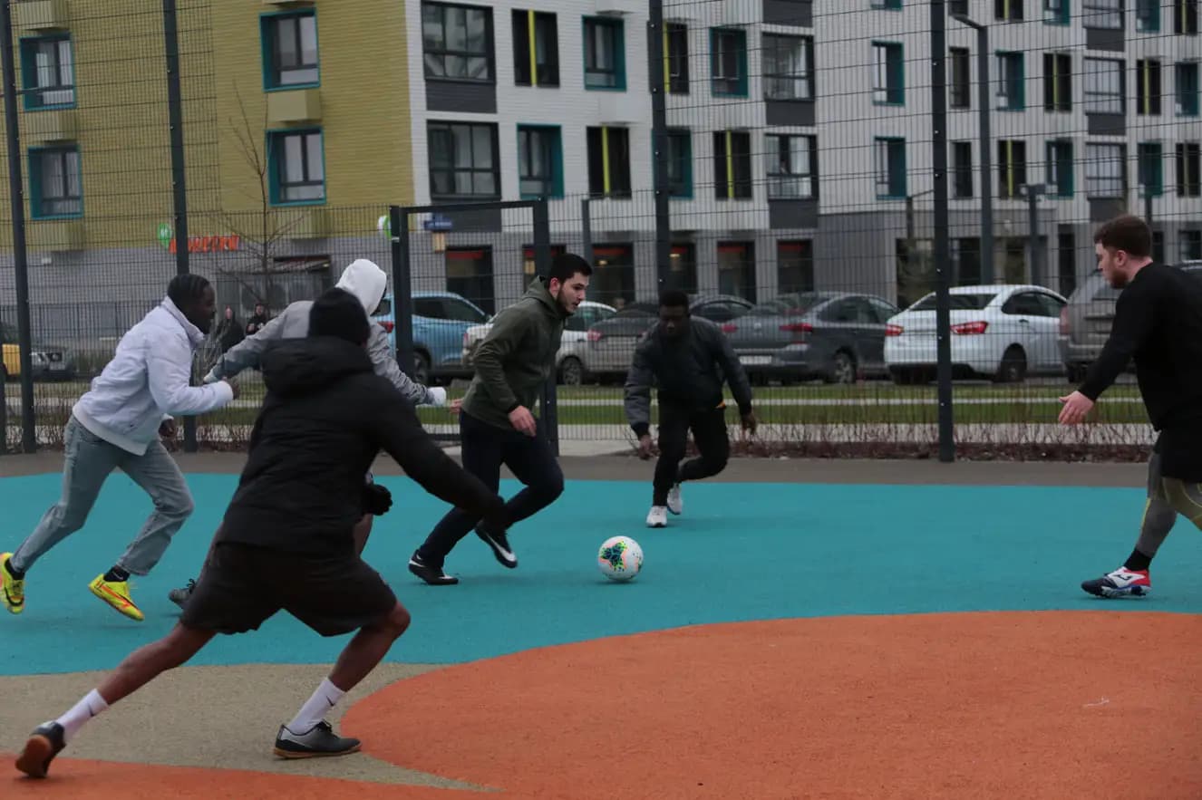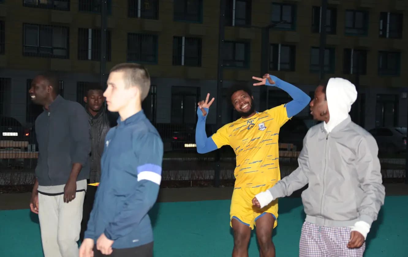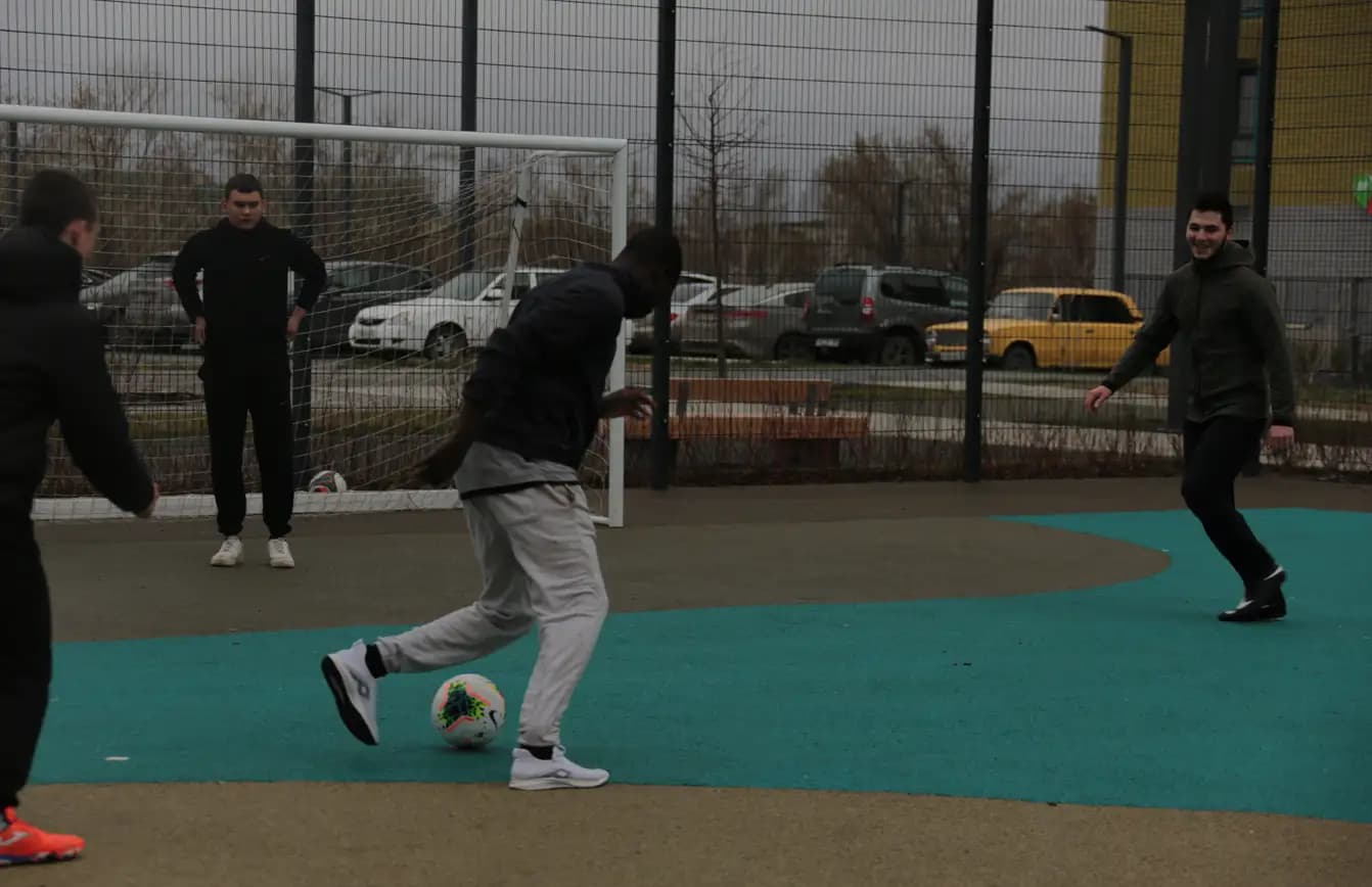 Шутки-шутками, но команда африканцев начала с довольно доминирующего футбола, контролировать их игру было довольно сложно, но не невозможно. В футболе главное чтобы каждый знал своё дело. После парочки пропущенных мячей, немного обсудив пробелы, мы включаемся в игру, а я выключаюсь (дорогу молодым, тренера не играют). Я встаю на судейскую позицию – сразу задаётся игра! Пацаны забивают голешники, уменьшая отрыв в счёте. Вот такой футбол нам нужен!