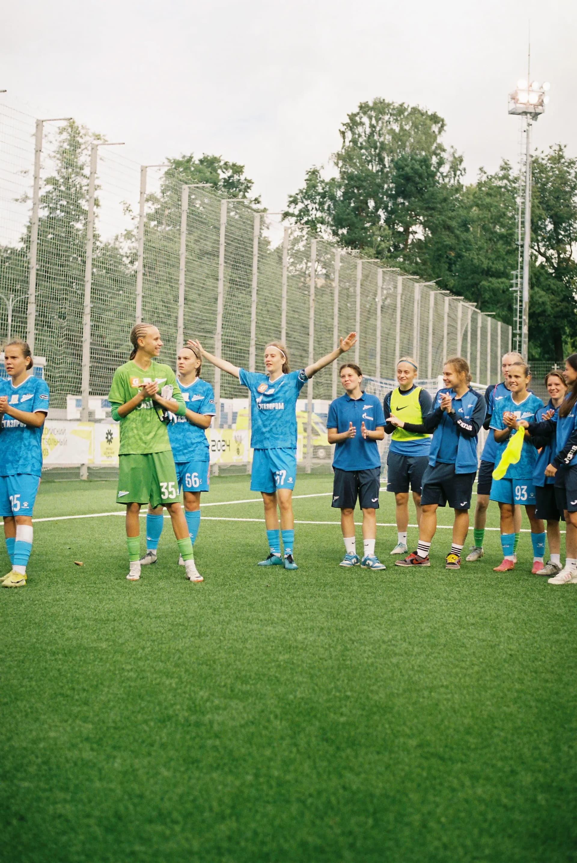 Итоговый счет на табло 3:0, и этим все сказано. После матча девочки из команды «Зенит» поблагодарили каждого болельщика, который пришел. Затем сделали общее фото с активными фанатами — это уже стало традицией.