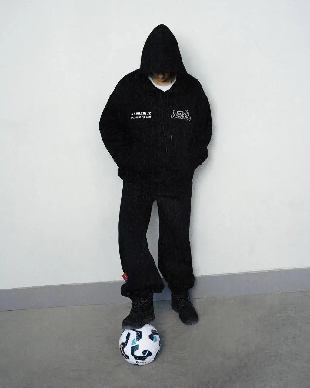 Худи, свитшоты, футболки, брюки и клетчатые рубашки, представленные в коллекции, воплощают энергию фанатской трибуны и свободу городской культуры