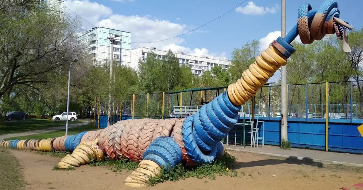 Еще такая деталь — когда в нулевые начали появляться новые стадионы, мне нравилось придумывать коробкам названия по типу 'что-то'-арена. Как Альянц-Арена или Открытие-Арена, только во дворе. У нас МЖК «Атом» — будет Атом-Арена. А через дорогу от нас, в соседнем дворе была Дракон-Арена — там стоял легендарный Шинозавр, которого в 2022 году «убили» бессердечные люди из управы. Это был динозавр из шин от местных автобаз — пока здесь не было застроек, здесь было где-то с десяток автопарков и автобаз. На месте Шинозавра сейчас нелепый дракончик, но я специально хожу мимо так, чтобы его не видеть. Чтобы думать, что там все еще Шинозавр.