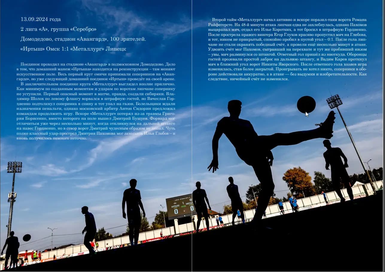 Опираясь на опыт этих 11 номеров, мы смело говорим: «вложите в создание программки душу и получите качественный продукт, который обладает своей историей, нюансами, знакомствами». Его хочется оставить как сувенир, который напоминает о ярких перипетиях того или иного матча.