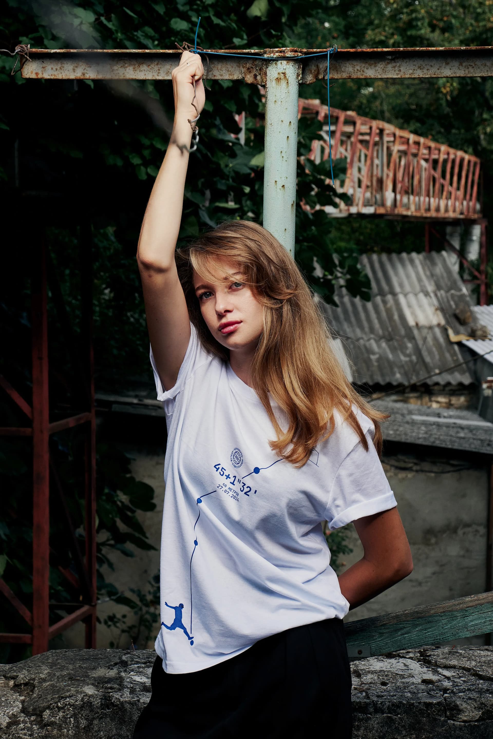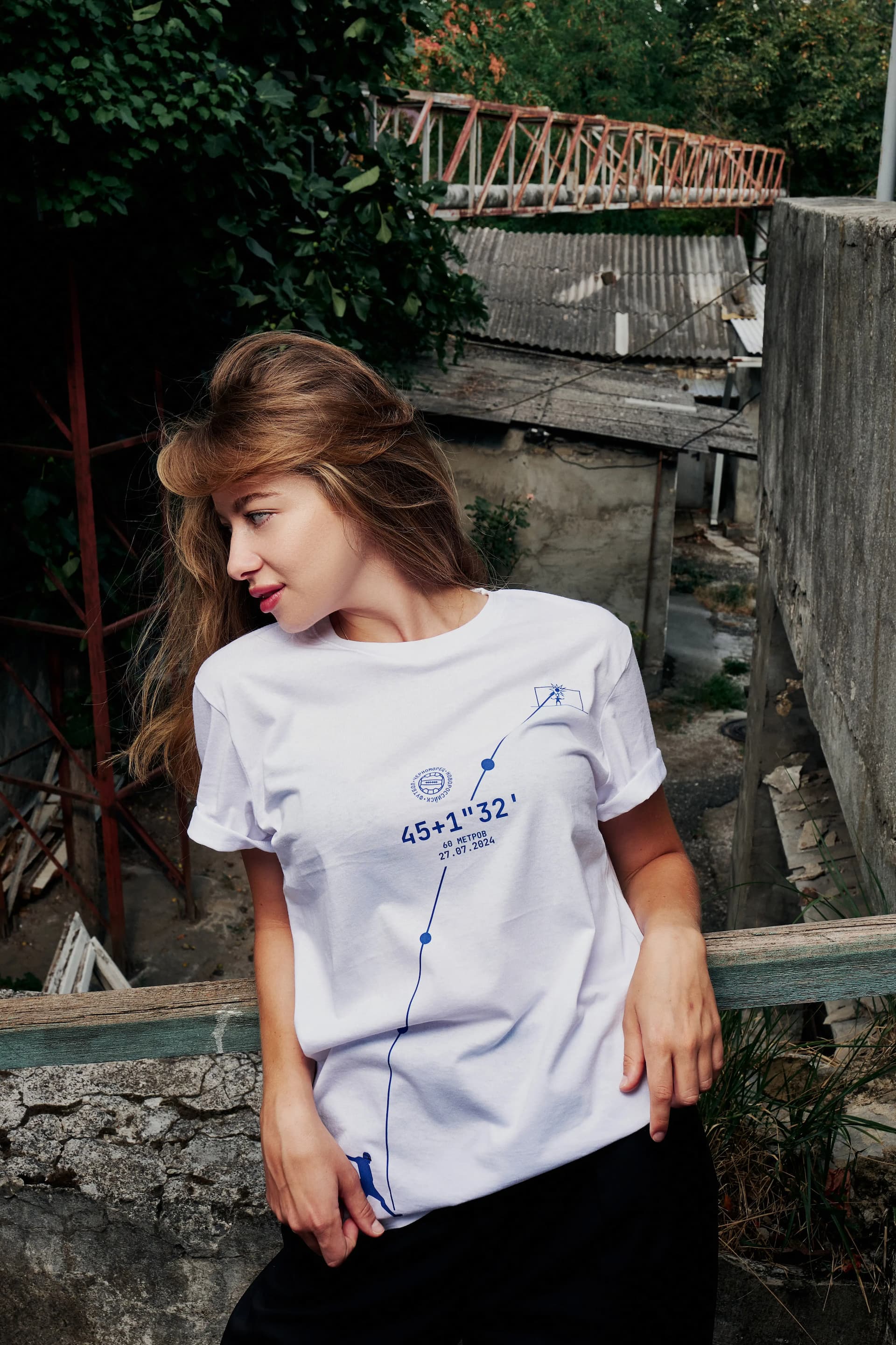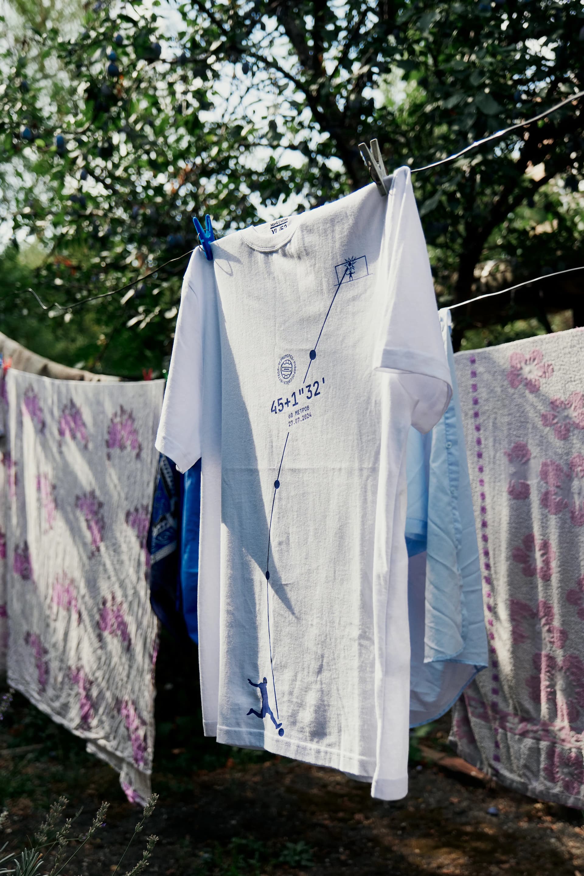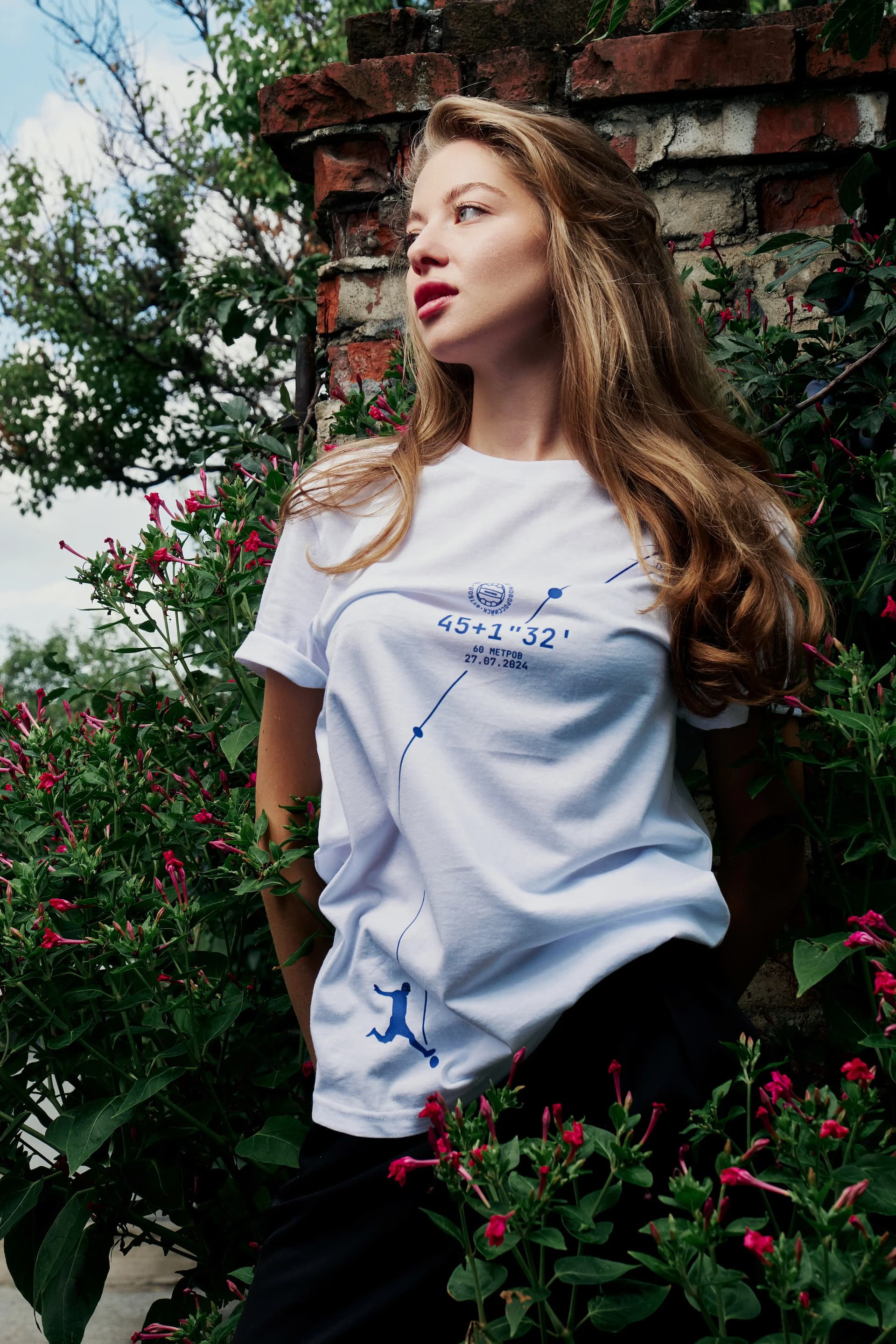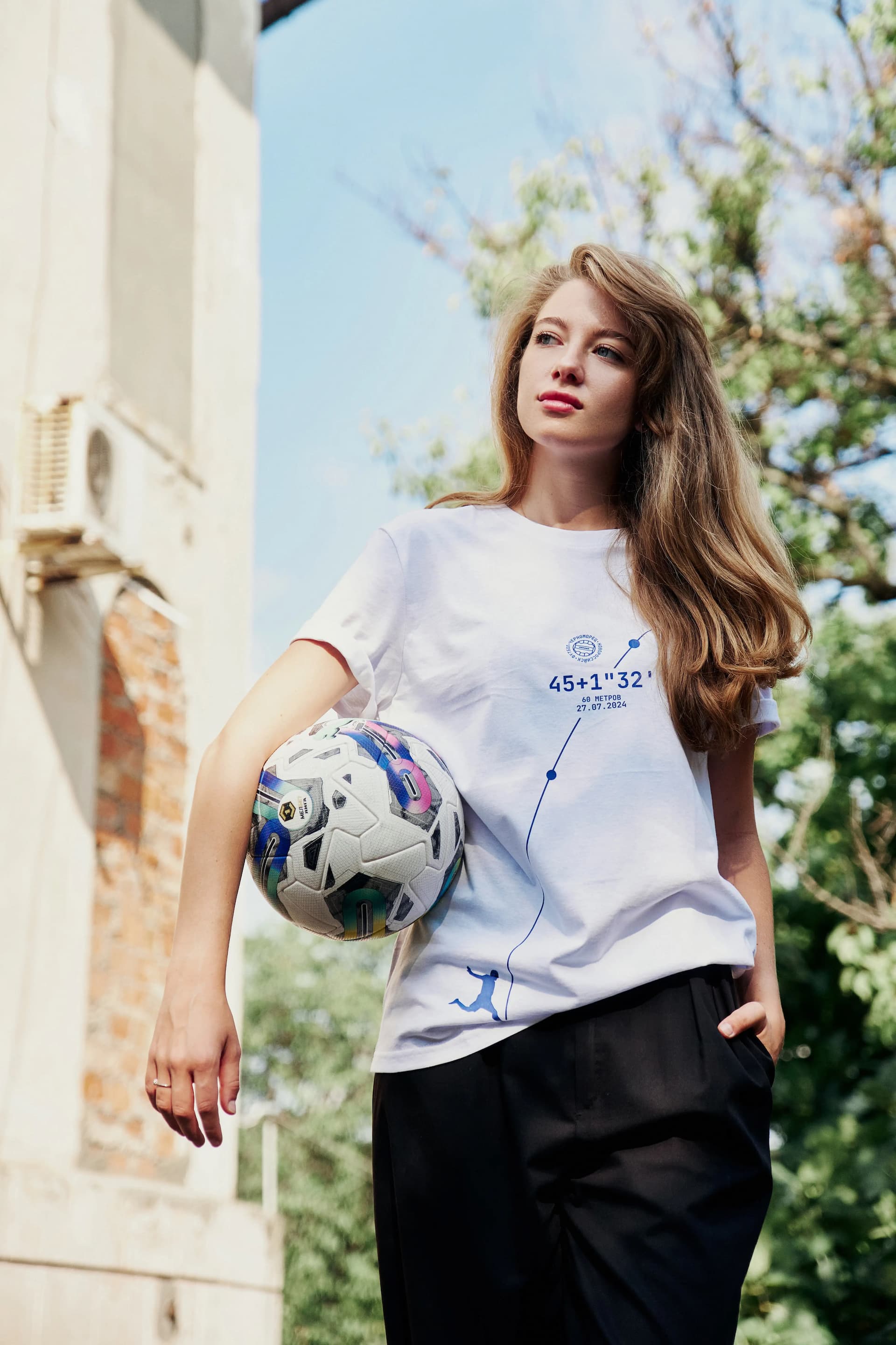 Изначально рассматривался вариант футболки с фразой «Я видел гол Мераби!», но после долгих обсуждений было принято решение отказаться от прямолинейного текста в пользу графического изображения: траектории полета мяча, преодоленного расстояния и времени гола.