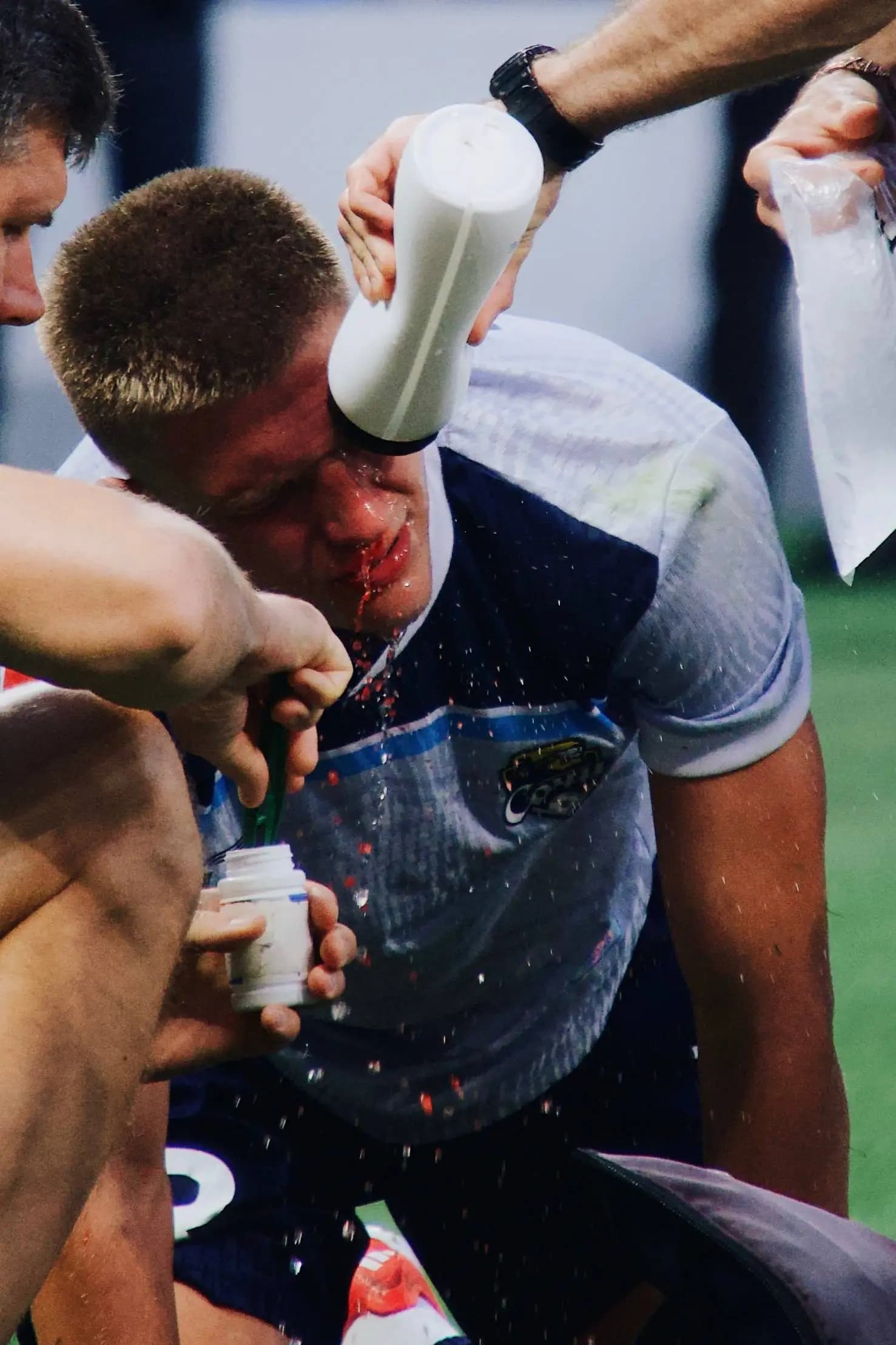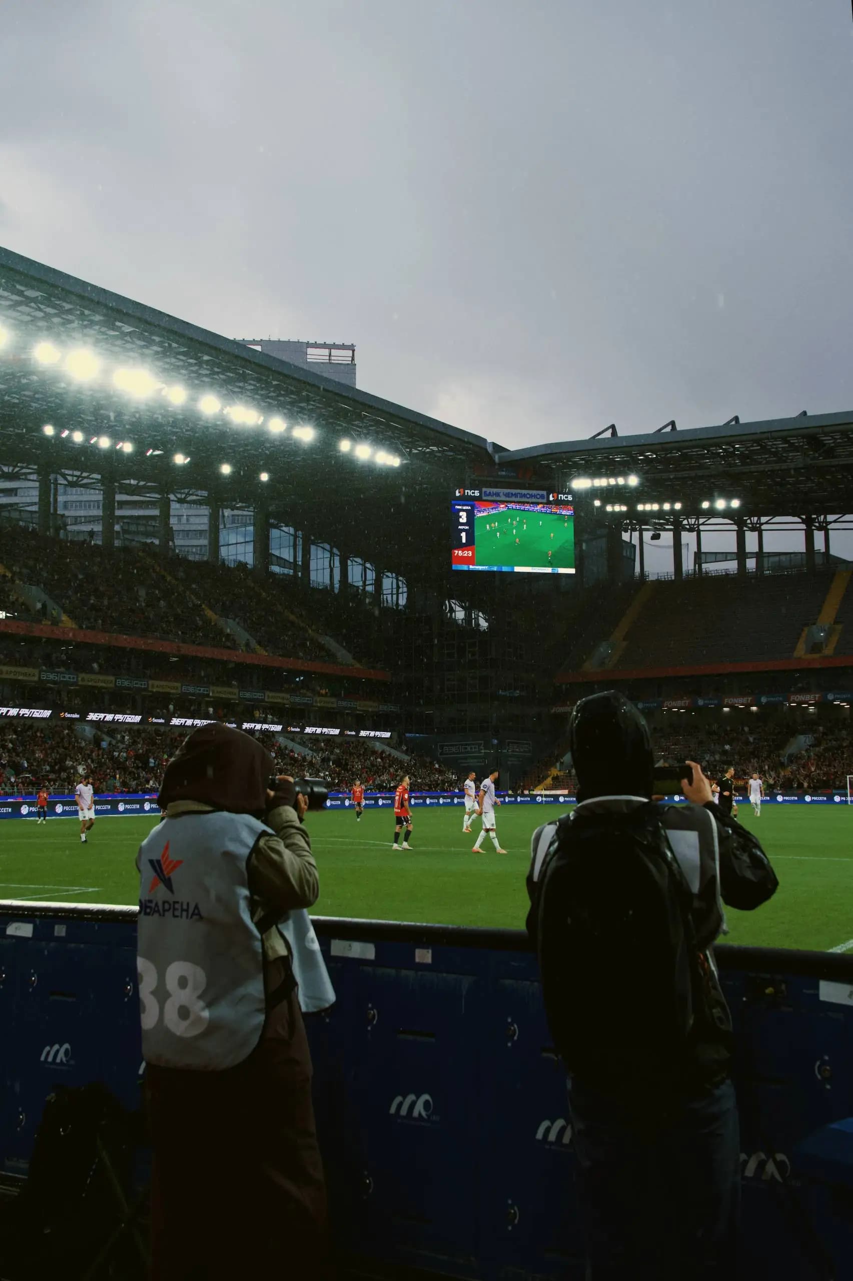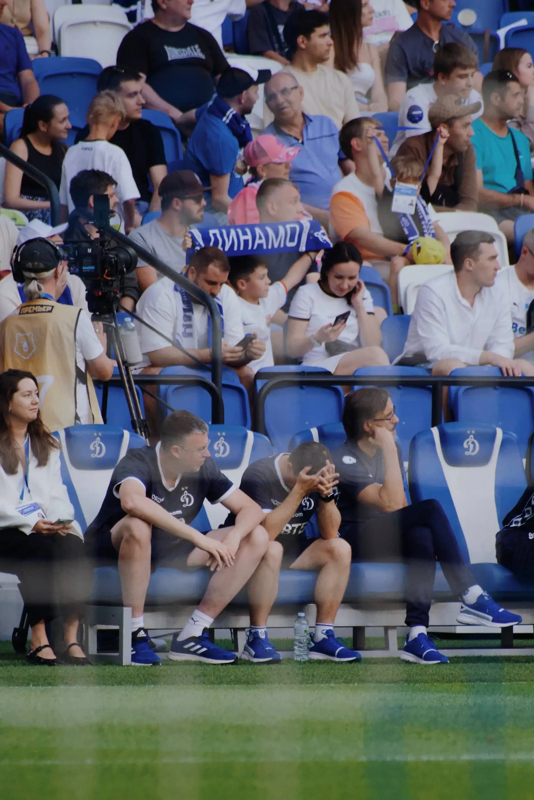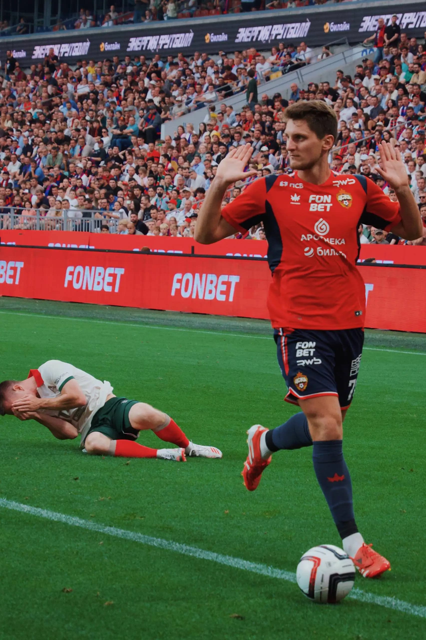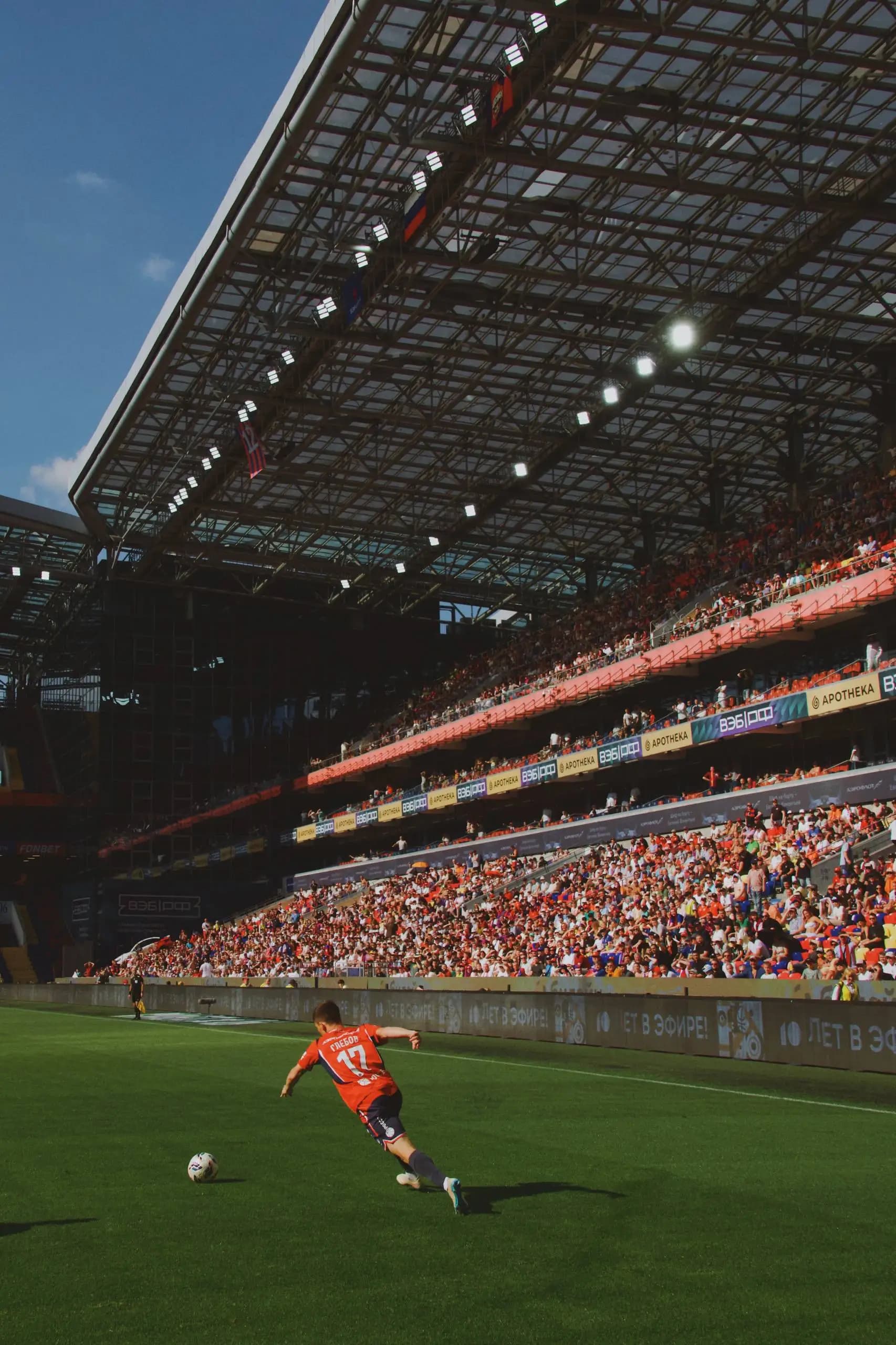 В пятом туре центр тяжести сместился за пределы поля. Фанаты на ограждениях, дым, пустые кресла и одинокие силуэты на фоне трибун. Игрок с бутылкой воды над головой, стюарды в тени — все эти детали создают фон, без которого сам матч теряет половину своей энергии.