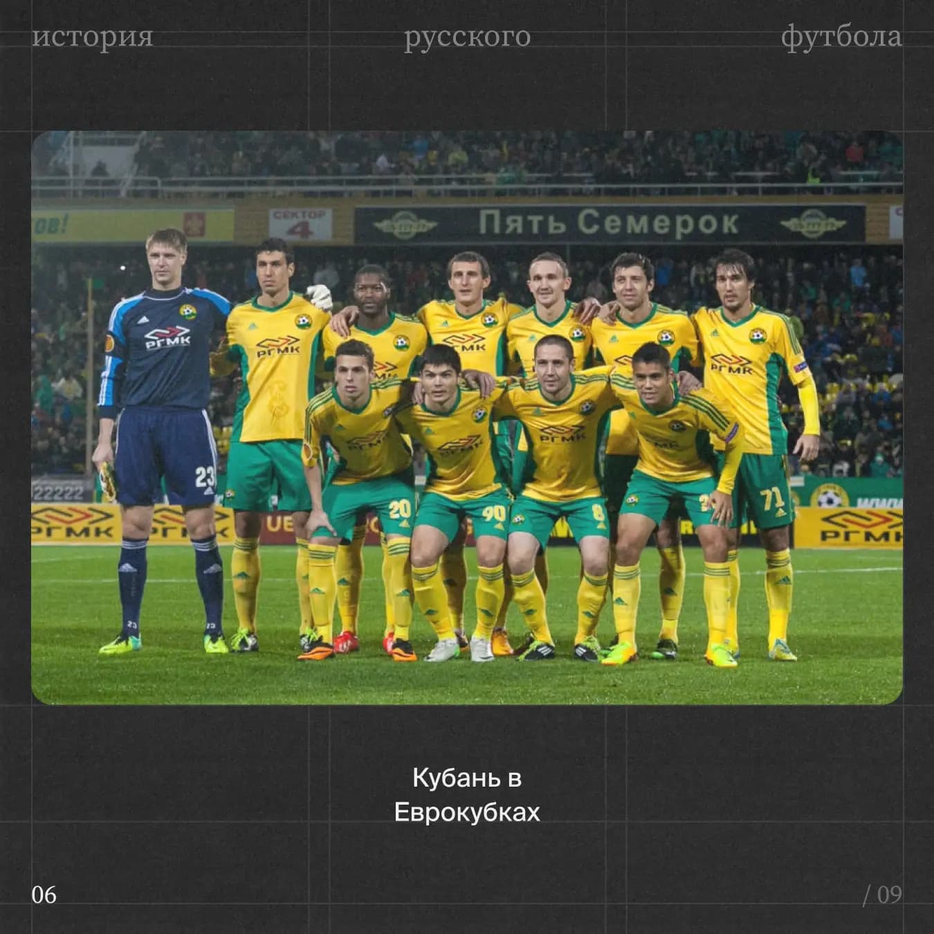 До своей ликвидации в 2018 году футболку клуба успели примерить Андрей Аршавин, Роман Павлюченков, Андрей Ещенко, чемпион Бундеслиги Фелипе Сантана и чемпион Лиги 1 Шарль Каборе. Они наполнили кубанскую историю, прежде чем звезда зелено-желтых окончательно погасла, пропустив вперед другие региональные клубы.