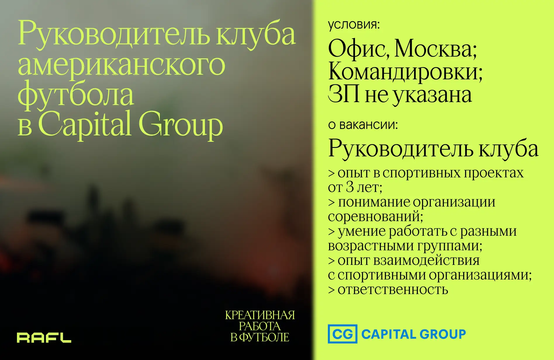 - Грамотный русский язык и понимание футбольной и спортивной индустрии