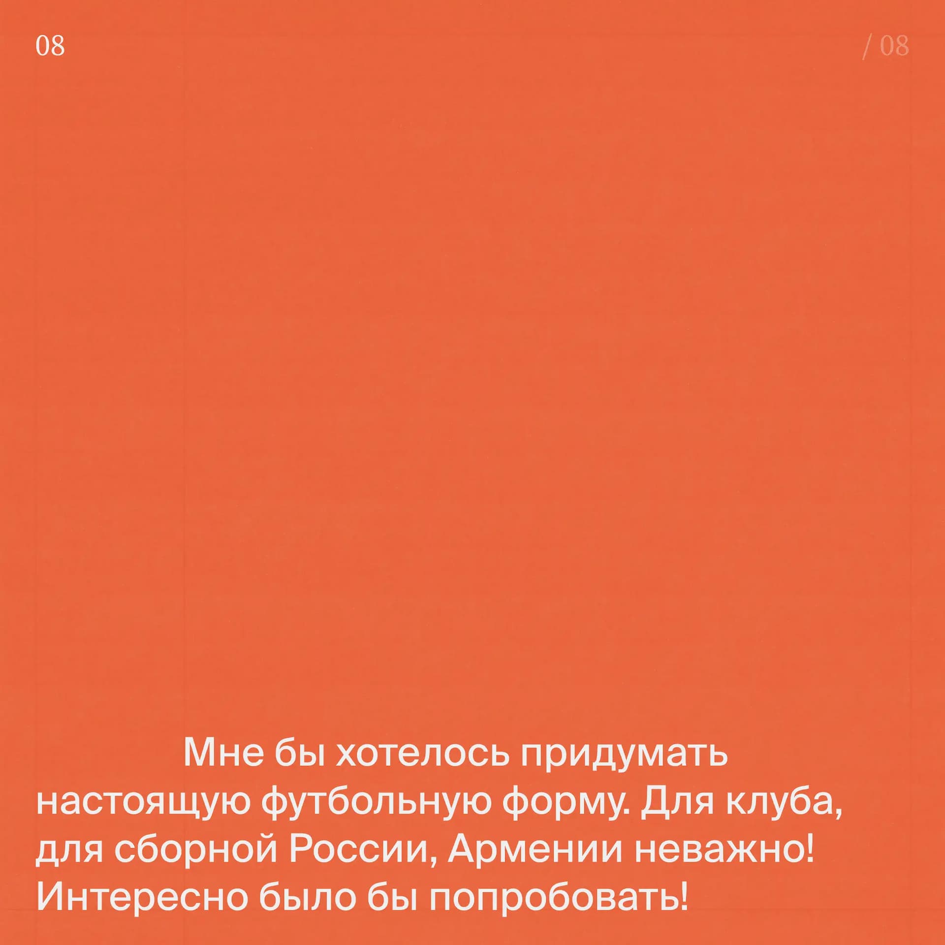 Люди, которые находятся на стыке между футболом и модой. Небольшой контингент, но он все-таки есть. Ваше издание — прямое доказательство. Но, если честно, когда я создаю вещи, я очень редко думаю о том, кто это будет носить. Главное для меня — самовыразиться, я мыслю в таких категориях.