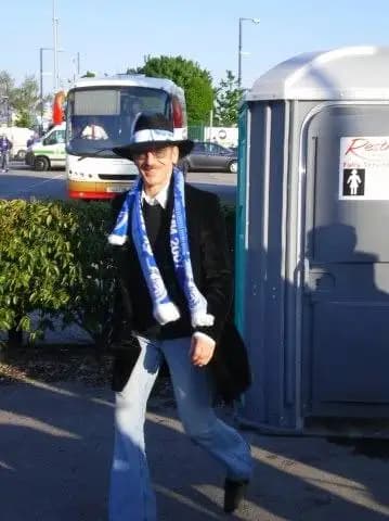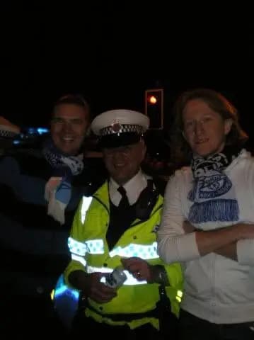 Когда мы приземлились и стояли на паспортном контроле один из подводников был настолько пьян, что уже не мог держать голову. И вот он стоит, на руке у него повязан зенитовский флаг, на голове — черная пилотка. Девушка на паспортном контроле спрашивает причину приезда, а он поднимает голову и лишь пожимает плечами. Она еще немного смотрит на него невменяемого, ставит штамп и говорит «Добро пожаловать в UK»