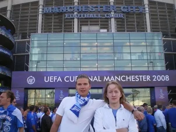 Мы с другом купили билеты. Потом был поиск, как нам максимально дешево долететь до Лондона. Был план добраться до Лондона, а оттуда ехать поездом уже до Манчестера. Но события развернулись так, что мы зашли на «Ландскрона» — там раньше была такая живая лента, где люди писали свои объявления — и какой-то парень написал «Друзья, у нас есть билеты, мы взяли в аренду машину, есть два места в автомобиле»