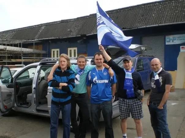 Думаем, что вокруг нас одни шотландцы и англичане — решаем проверить. Кто-то из наших ребят высовывает руку с шарфом «Зенита» из люка, затем смотрим по сторонам и видим, как ребята из соседних машин начинают доставать флаги и фанатские розы. Так мы поняли, что каждая пятая машина — это наши ребята