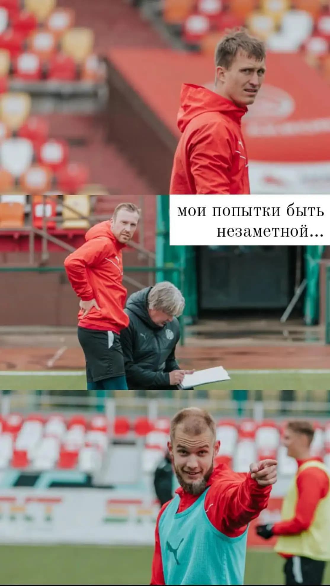 Игроки больше расслаблены, нет матчевого адреналина, зато есть случайные моменты: кто-то внезапно пошутил, кто-то упал неуклюже на газон — все эти забавные провалы идут в мусорку, если не обладают комическим шедевром. Но вопрос — в чем неправильность фотографии?