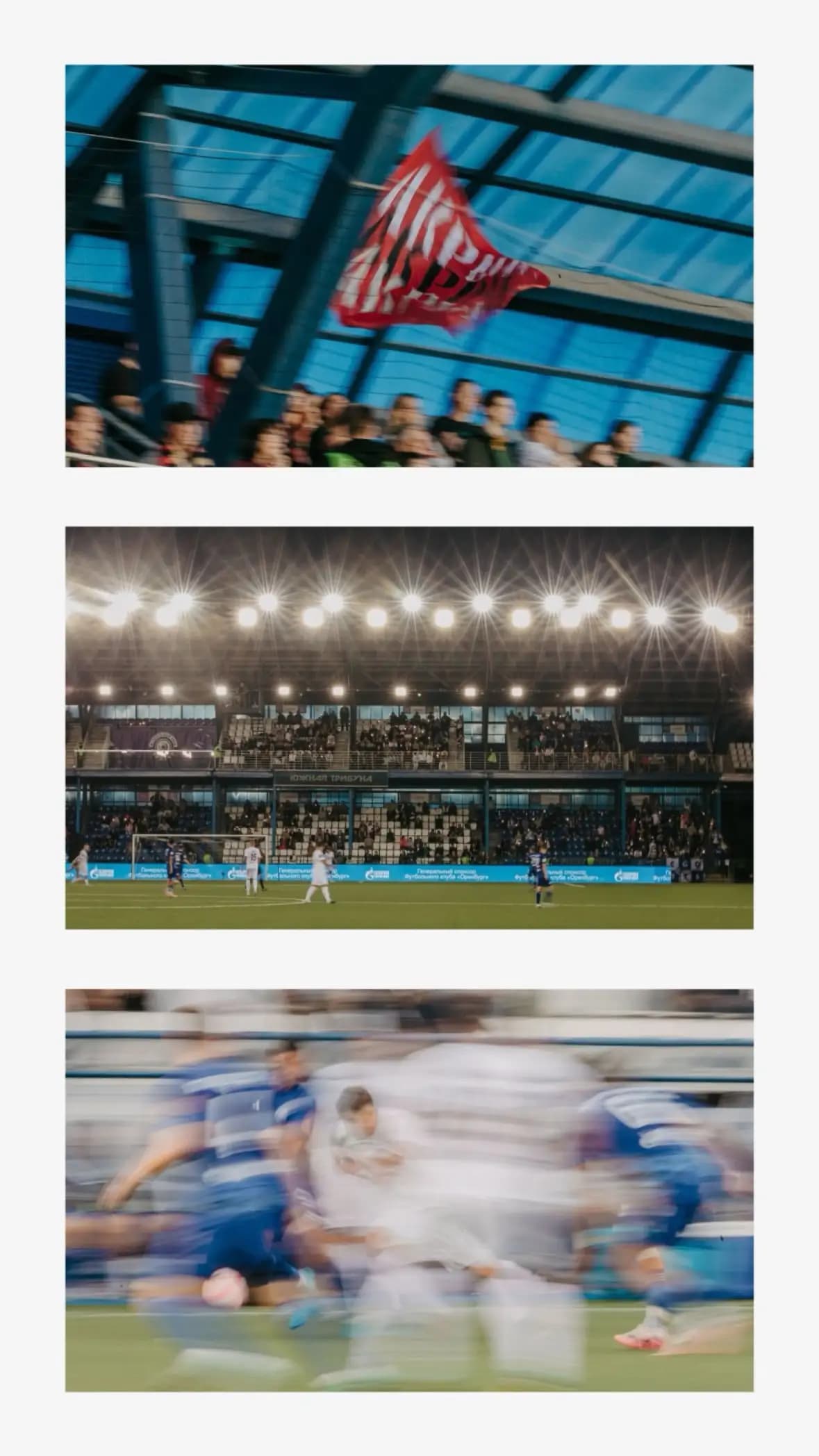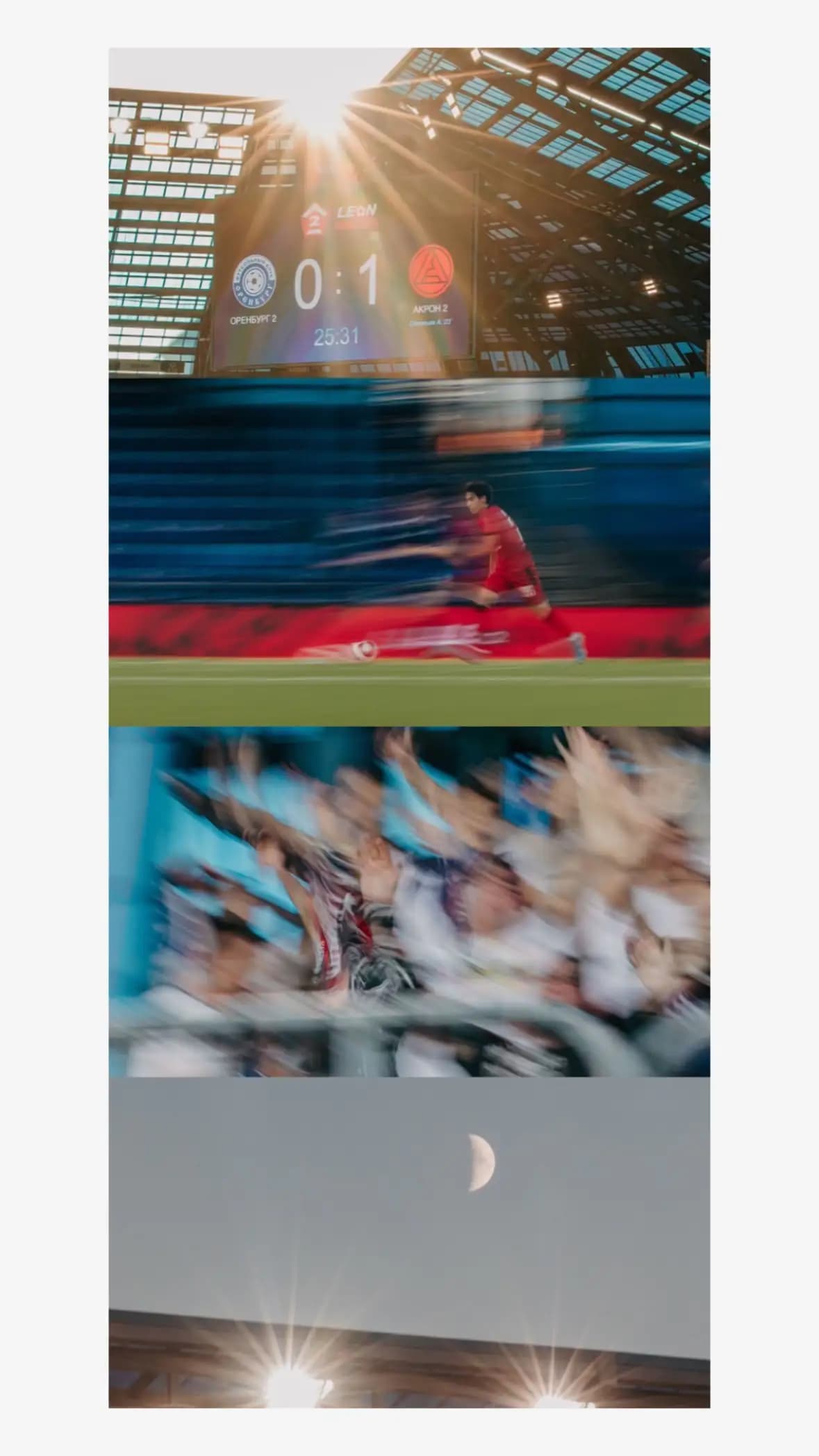 Придите заранее. Обойдите стадион. Посмотрите, как падает свет, где лучшие ракурсы. Изучите поле, трибуны, эмоции болельщиков. Футбол — это не только игроки. У стадиона тоже есть право на рассказ о себе.
