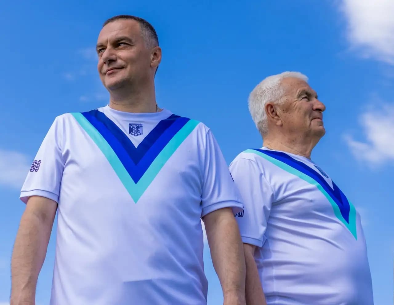 В парадном костюме выделяется толстовка с надписью «Волгарь» и датой основания клуба