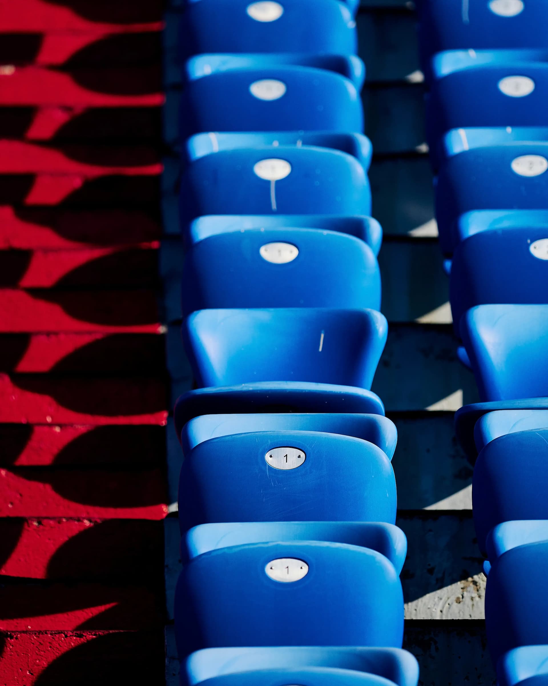 Красный и синий — классическое для футбола сочетание цветов. Здесь оно создает особый контраст между секторами.