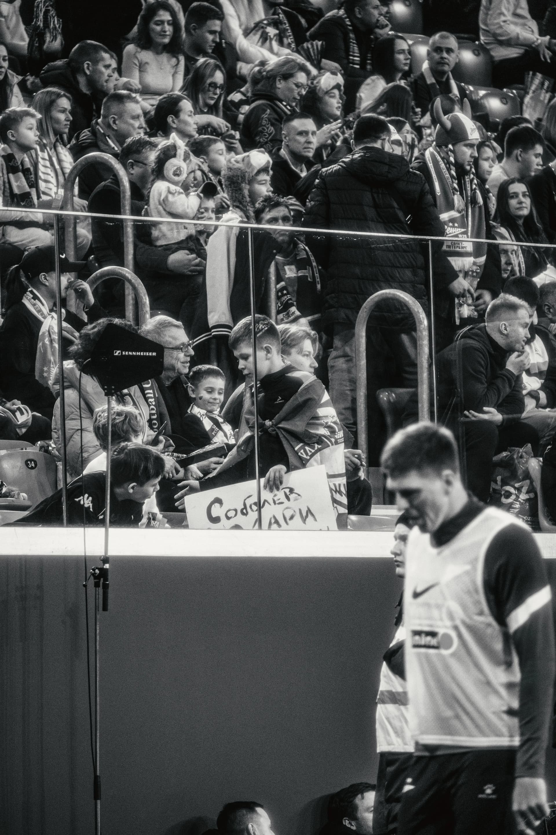 Отсутствие коммуникации встречается регулярно. Соболев в упор не замечает мальчишку, пришедшего с баннером и просьбой подарить футболку. Хотя его голос точно доносится до Александра. Но тот продолжает со стеклянным взглядом бегать мимо мальчика. Вперед-назад, вперед-назад.